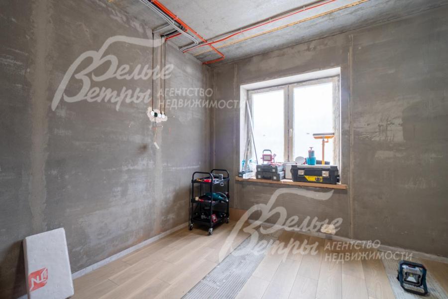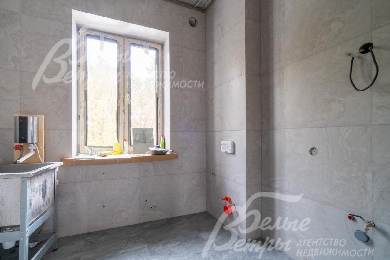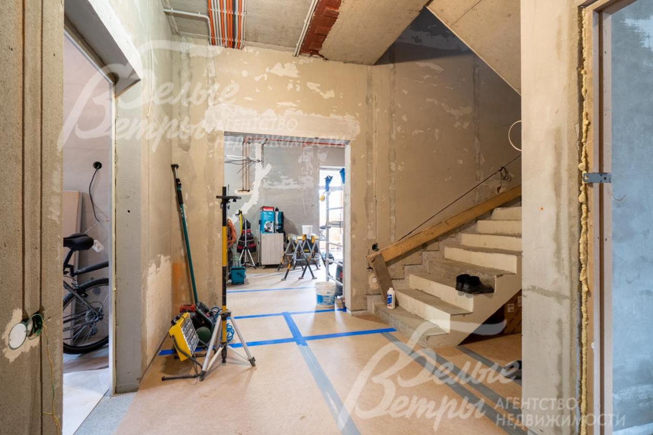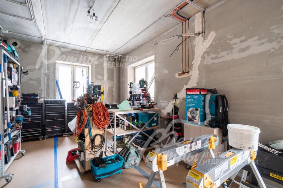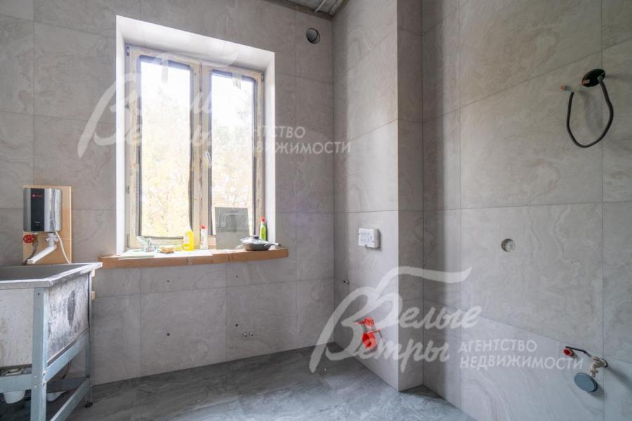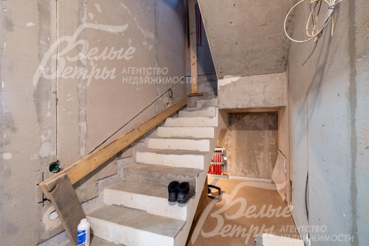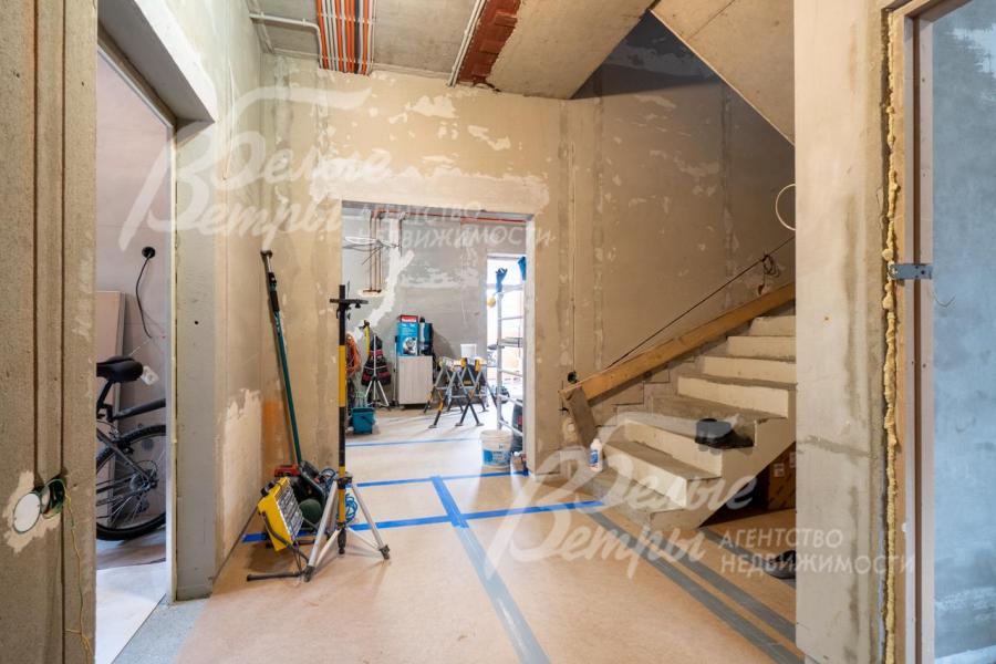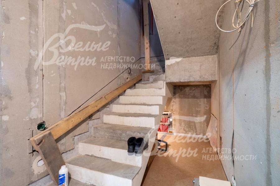 Описание внутренней отделки: под финишную отделку. На стенах шпаклёвка под покраску. На полу керамогранит и плитка - на пером этаже и в санузле второго этажа. Закуплено кварц-виниловое покрытие для комнат второго этажа. Монолитная лестница шириной 90 см. Коммуникации разведены до точек, водяной тёплый пол на 1-м этаже и в санузле на 2-м. Входная алюминиевая дверь с терморазрывом высотой 2.5 м.