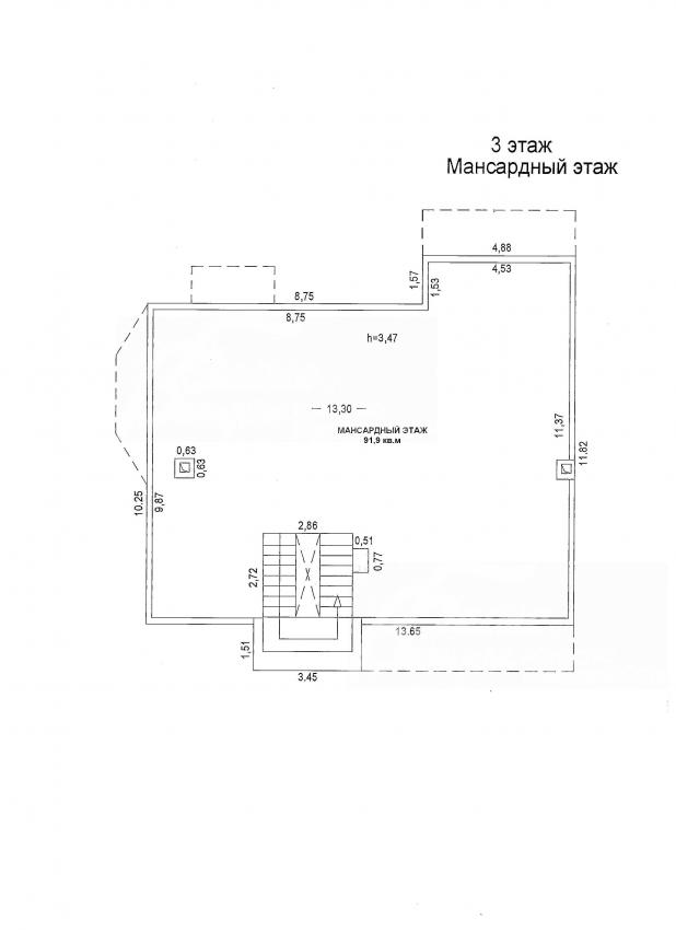 3-ий этаж: мансардный этаж: комната отдыха 50 кв.м, спальня 15 кв.м, с/узел 7 кв.м, кладовая 12 кв.м.