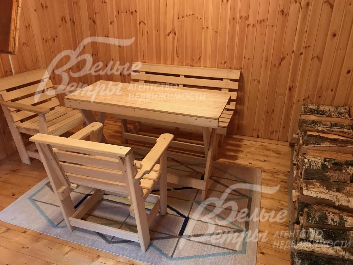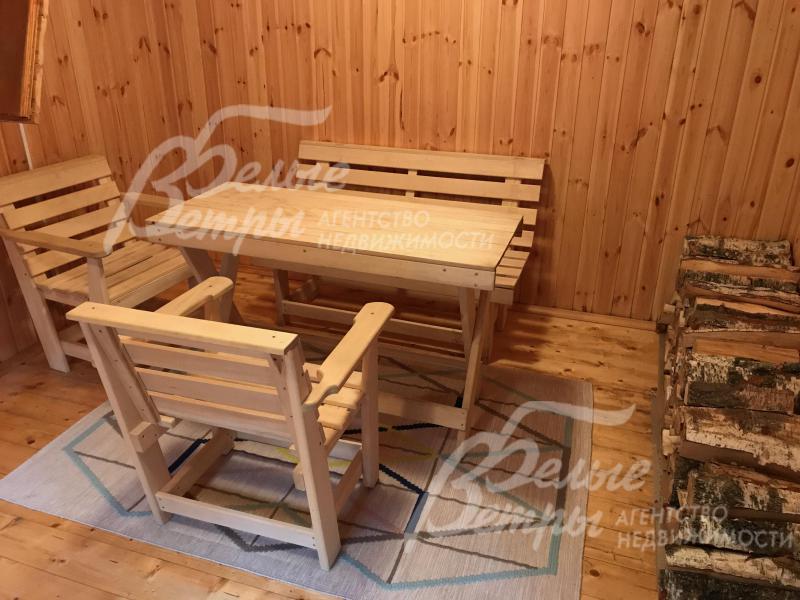 Дополнительные строения: Бревенчатая баня 50 кв.м. 1 этаж: предбанник, комната отдыха, туалет, душевая, парная с печью на дровах, 2 этаж: комната 20 кв.м. Хозблок 10 кв.м.