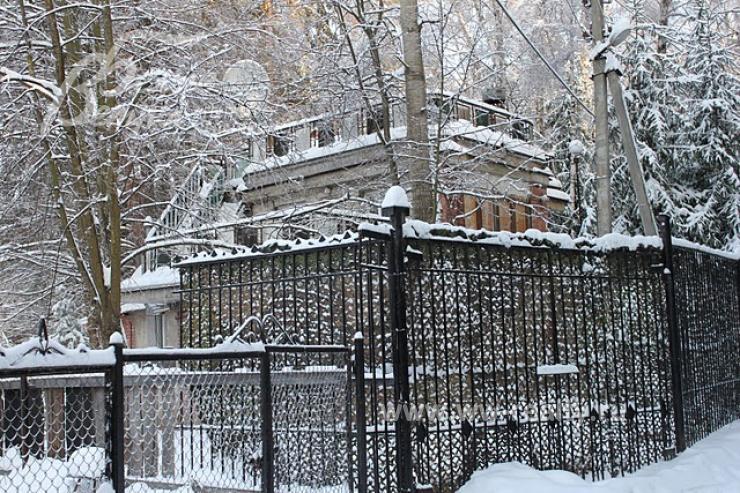 Дом обладает собственной уникальной историей и неповторимой архитектурой. Напоминает крепость с элементами русского и мавританского стилей. Имеет эксплуатируемую кровлю 60 кв.м с камином и другие интересные детали. Расположен в вековом лесу в стародачном поселке академиков.