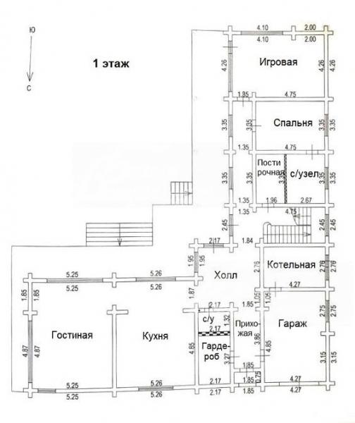1-ый этаж: прихожая, гардеробная, кухня-столовая, гостиная с камином, гостевая спальня с санузлом, игровая комната (бильярдная), постирочная, гостевой санузел, котельная, гараж на 1м/м.