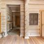 Облицовка стен: брёвна отшлифованы вручную и покрыты маслом REMMERS и противопожарной пропиткой