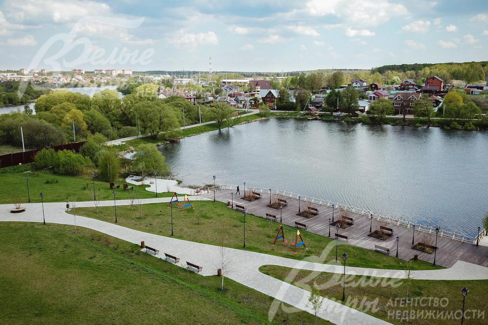 обжитой благоустроенный поселок на берегу озера Александровы пруды