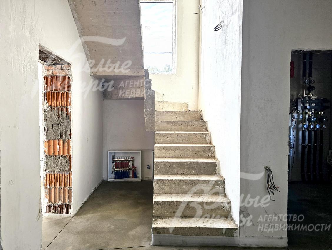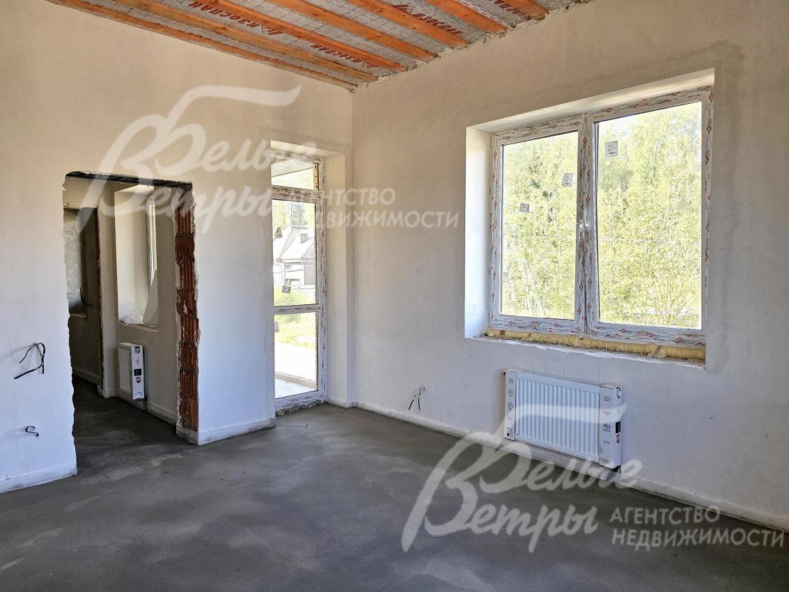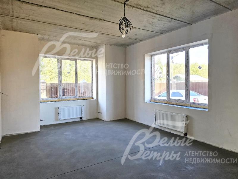 Описание внутренней отделки: дом – под чистовую отделку. Стены оштукатурены и зашпаклёваны, выполнена стяжка пола (на 1-м этаже и в санузлах 2-го этажа – тёплые полы), потолки – монолитные (между вторым этажом и чердаком – дерево), установлены стальные панельные радиаторы, сделаны выводы под сантехнику, смонтирована монолитная бетонная лестница