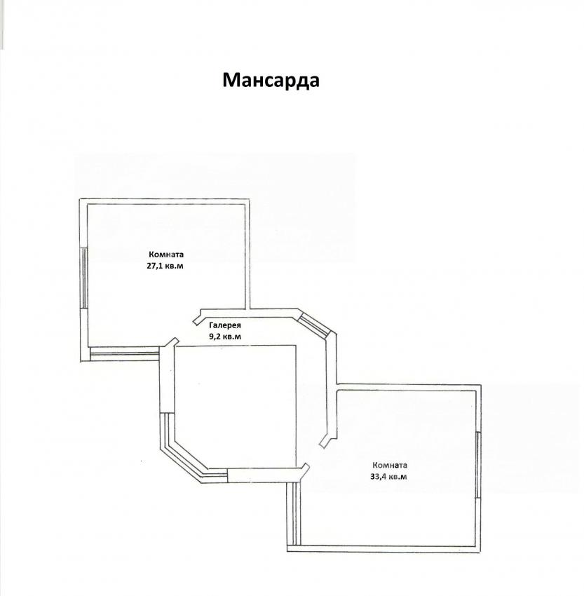 3-ий этаж: Комната 27 кв.м, комната 33.4 кв.м, галерея 9 кв.м.