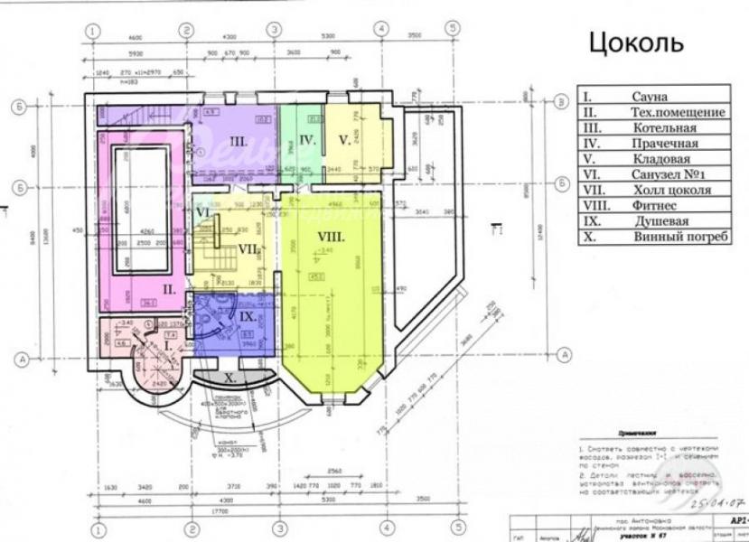 Цоколь: комната отдыха/спортзал 45 кв.м, сауна, душевая, с/узел, винный погреб, прачечная 8.3 кв.м, кладовая 13.6 кв.м, котельная