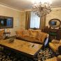 Описание внутренней отделки: Стильная отделка из эксклюзивных материалов в стиле ар-деко, использованы мрамор, гранит, искусственный камень "White hills", массив дерева, декоративная штукатурка, большие зеркала, венецианская штукатурка, обои ( пр-ва Англия), покраска. Кафель и керамогранит с водяным подогревом, палубный паркет (массив дуба), в бассейне рельефная мозаика (функция массажа ног). Лестничный марш железобетонный шириной 1м, облицован натуральным мрамором с чугунными литыми перилами. Потолки оштукатурены, выровнены и окрашены, с гипсовыми карнизами по периметру. Вся сантехника установлена немецких и итальянских брендов. Все коммуникации разведены под ключ.