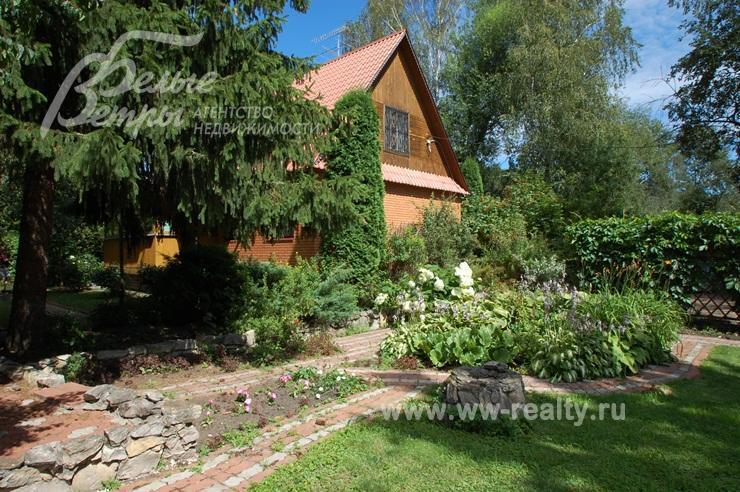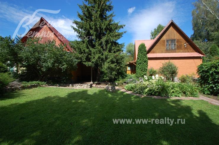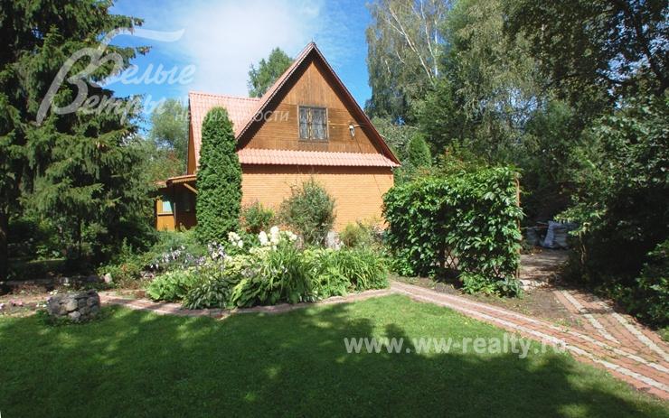 Уютный деревянный дом (видеоролик) расположенный на шикарном участке, утопающем в зелени: лесные и плодовые деревья и кустарники и цветники. Все коммуникации разведены по дому. 2 этажа, гостиная с камином, гостиная-бильярдная, кухня-столовая, 2 спальни, ванная комната.