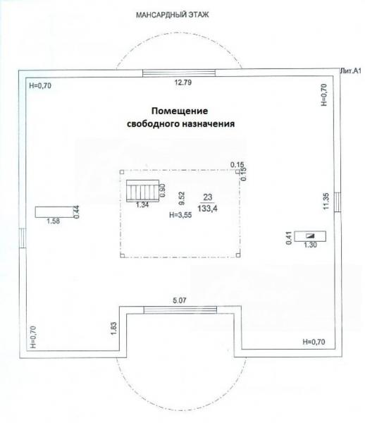 3-ий этаж: помещение свободного назначения 133 кв.м с 2 вертикальными окнами и 2 мансардными окнами