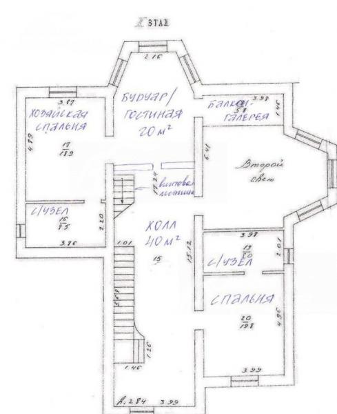 2-ой этаж: холл 40 кв.м, спальня 20 кв.м с с/узлом 8 кв.м, хозяйская спальня 19 кв.м с с/узлом 9 кв.м и будуаром/гостиной с балконом/галереей 6 кв.м