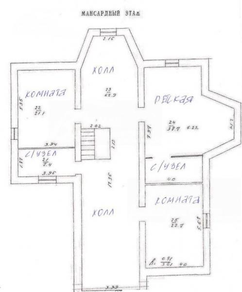 3-ий этаж: холл 63 кв.м, спальня 21 кв.м с с/узлом 7 кв.м, детская спальня 30 кв.м с с/узлом 9 кв.м, спальня 23 кв.м