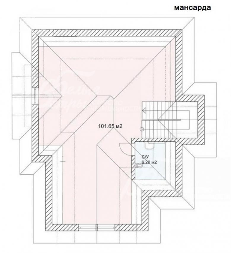 3-ий этаж: мансарда: помещение свободного назначения 101.6 кв.м, с/узел