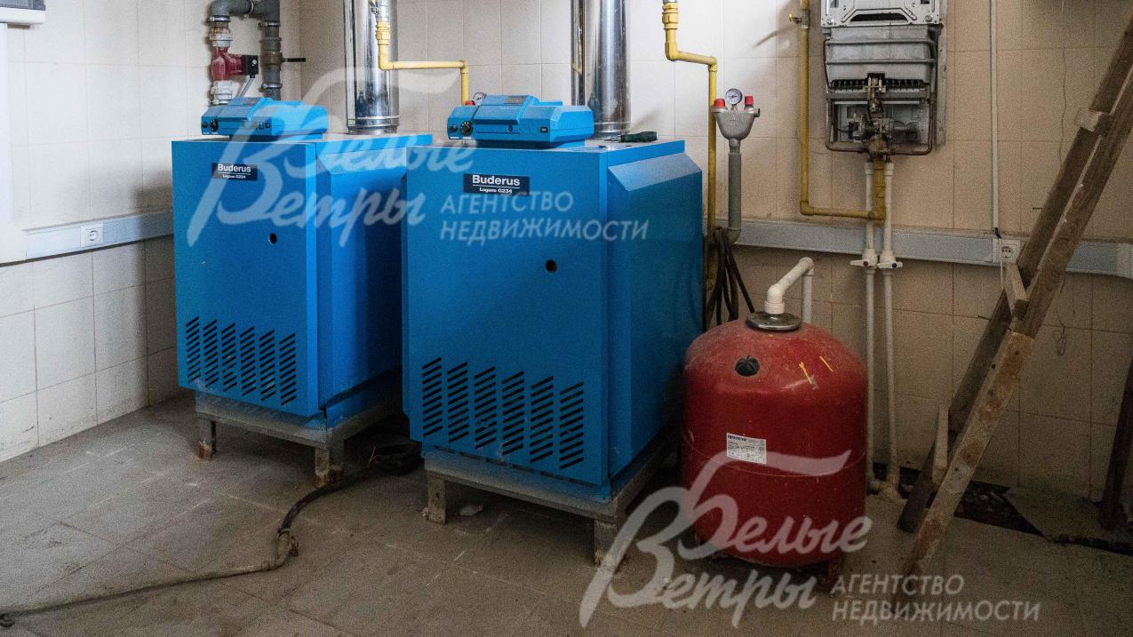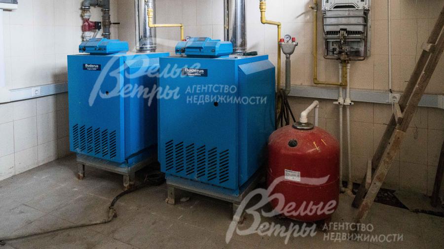 Инженерное обеспечение: два газовых котла Buderus (100 кВт, 50 кВт); полностью выполнена разводка по дому с установкой радиаторов отопления и теплых полов из меди. Проложена теплотрасса в гараж с помещениями для персонала с установкой радиаторов; система центральной принудительной вентиляции и кондиционирования во всем доме с установкой оборудования;