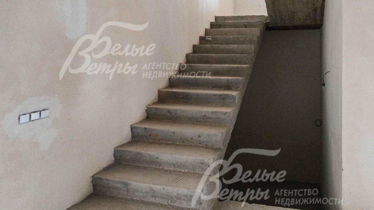Описание внутренней отделки: под финишную отделку; стены оштукатурены, залита стяжка; все центральные коммуникации разведены до точек; лестница ж/б; подоконники деревянные (лиственница); дверь входная металлическая;
