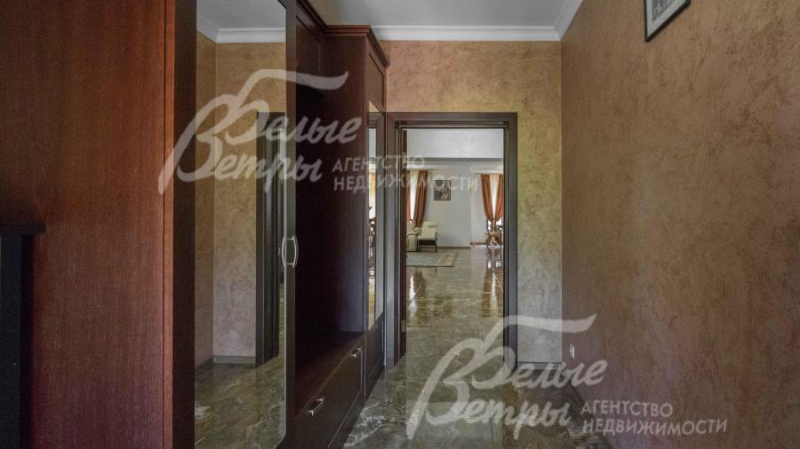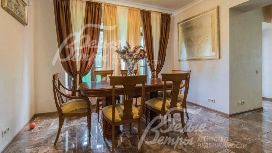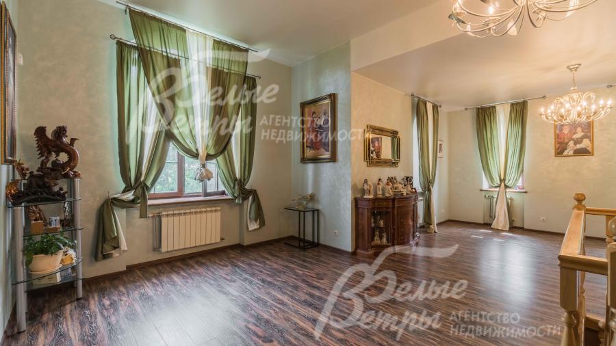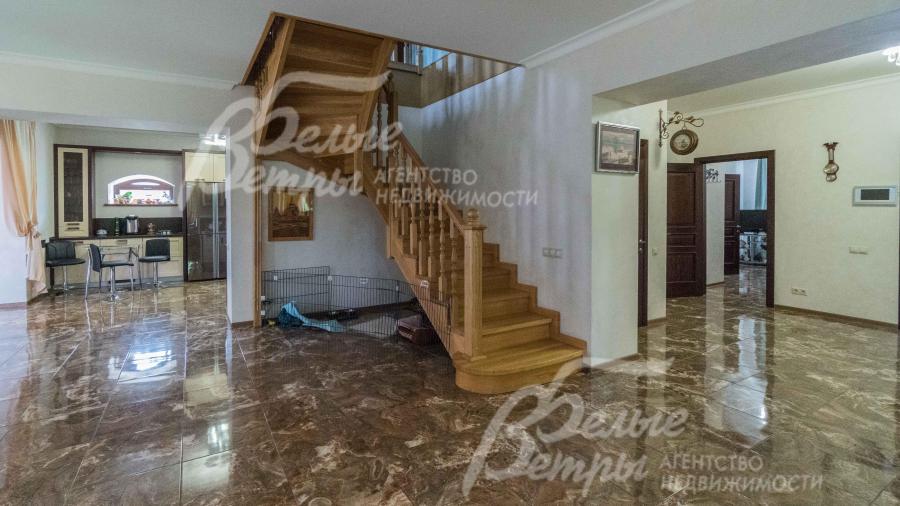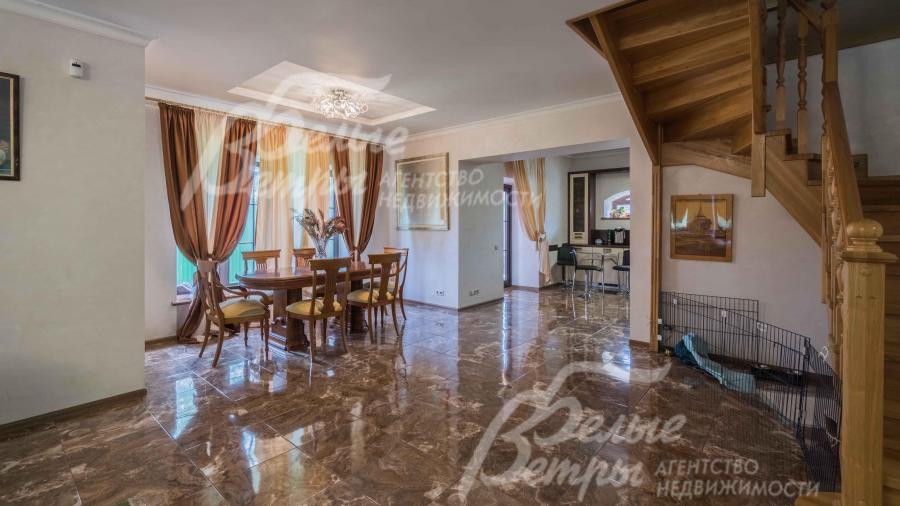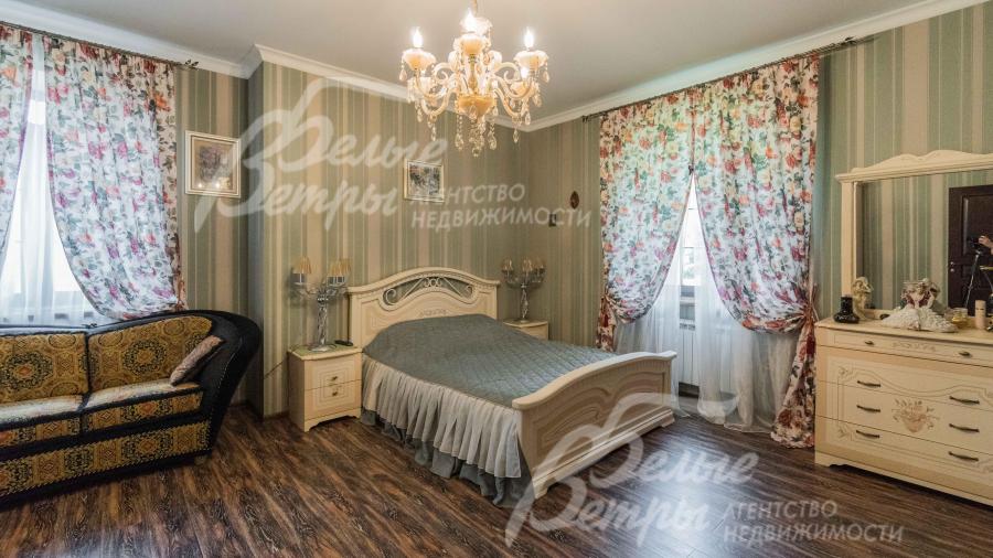Дом в стиле современной классики - гармоничные формы, арочные дубовые окна с раскладкой. Мощные кирпичные стены - толщина 60 см. В доме на 1 этаже - спальня, СПА-зона с парной, большая застекленная веранда. Коттедж и вспомогательное строение удачно размещены на большом красивом участке с деревьями. Обжитой камерный поселок бизнес-класса - большие дома равного класса на больших участках, широкие улицы, все центральные коммуникации. Лес по границе с поселком. В шаговой доступности школа "Ника" (300 м) и остановка общественного транспорта.