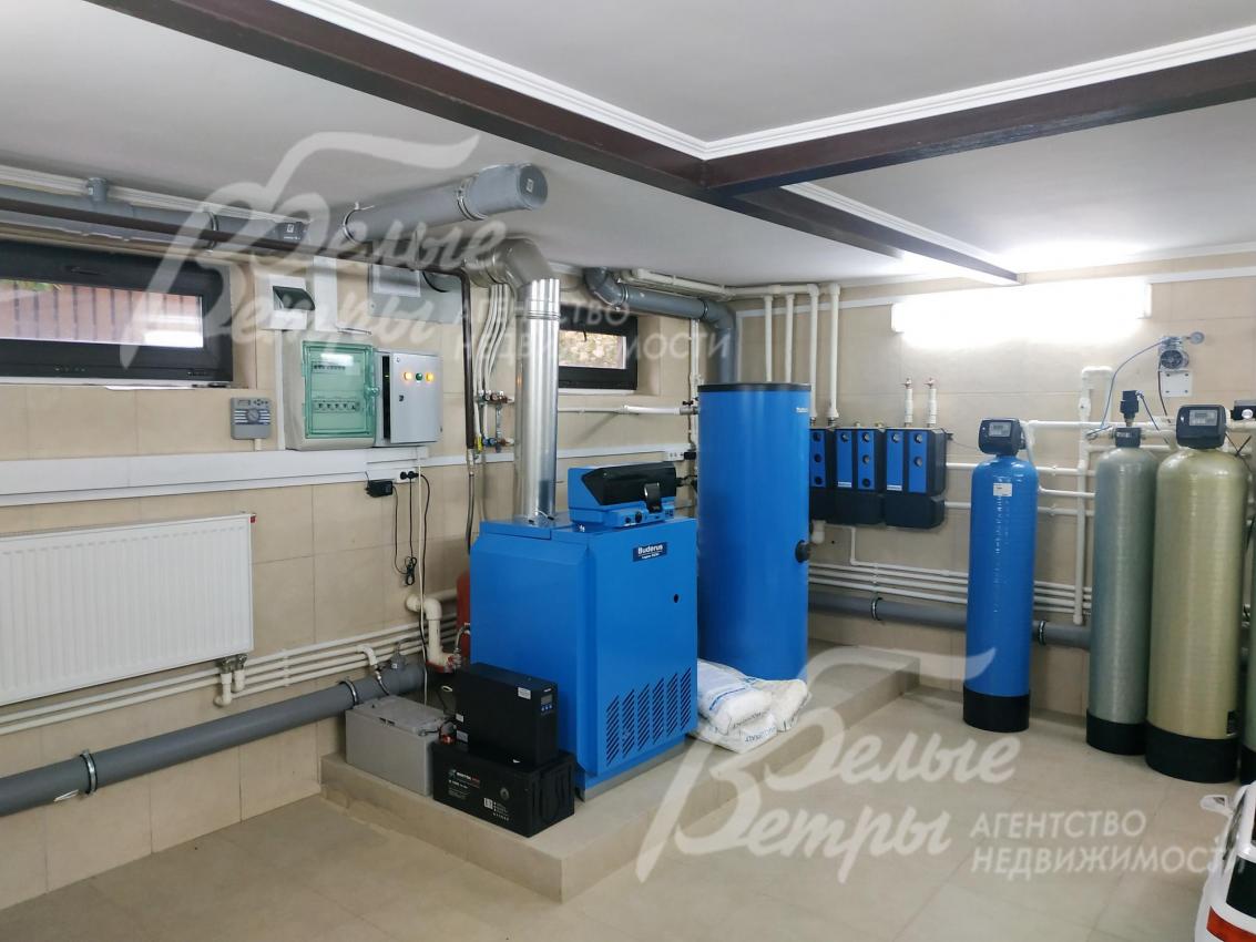 Инженерное обеспечение: в доме установлены газовый котел Buderus 50 кВт, тёплые полы, стальные радиаторы Buderus - экраны на заказ (150 тыс. руб.), бойлер Buderus 200 л и многоступенчатая система очистки воды. Естественная вентиляция, 2 кондиционера Mitsubishi в столовой и главной спальне. Есть сигнализация. 2 аккумуляторные батареи (100 тыс. руб.) на газовый котёл, стабилизаторы напряжения на 3 фазы (300 тыс.руб.)