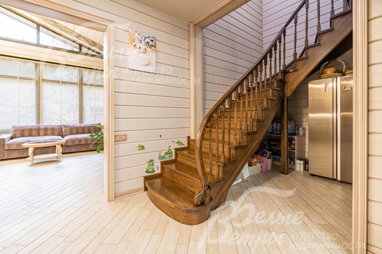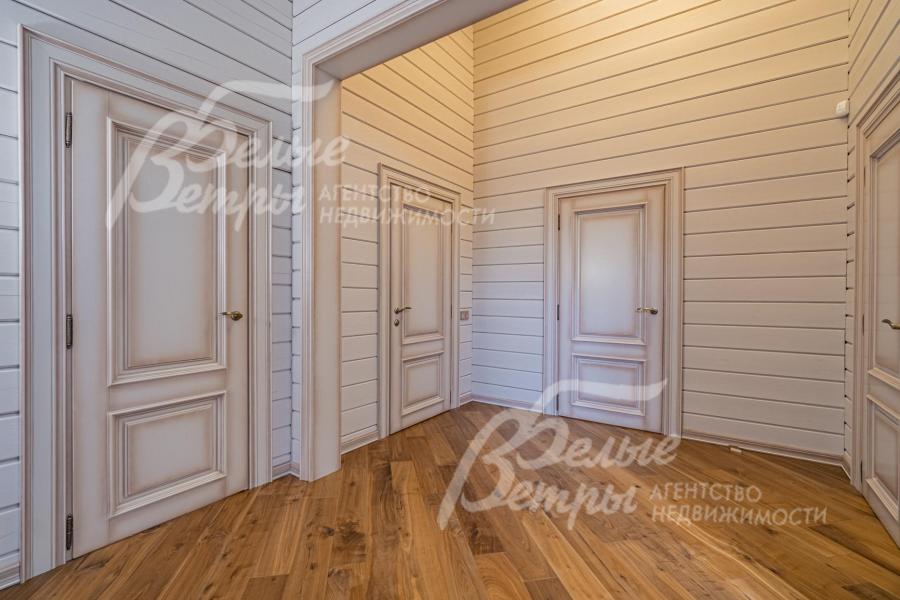 Описание внутренней отделки: внутренняя отделка выполнена в едином классическом стиле с применением дорогих и качественных материалов. Стены - покраска в различных тонах (краска ILVA - высшего итальянского качества). На полу плитка, керамогранит и массивная деревянная доска (орех). Лестница из массива дуба шириной 1 м с удобным подъемом, сделана на заказ. Натяжные потолки с потолочными балками. Установлена импортная сантехника Old England, Villeroy & Boch, Grohe. Все коммуникации разведены под ключ, э/э, радиаторы Buderus, везде, где плитка, на 1-ом этаже тёплый пол. Двери межкомнатные (на заказ, отличного качества), высотой 200 см. Подоконники в едином стиле с дверьми, балками потолка и покраской экранов радиаторов и электрических розеток.