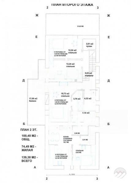 2-ой этаж: холл 9 кв.м, спальня 19 кв.м со своими с/узлом 5 кв.м, гардеробной 4 кв.м и выходом на балкон-террасу 20 кв.м; еще две спальни по 12 кв.м с выходами на террасы 17 и 22 кв.м, гардеробная 3 кв.м, общий с/узел 4 кв.м
