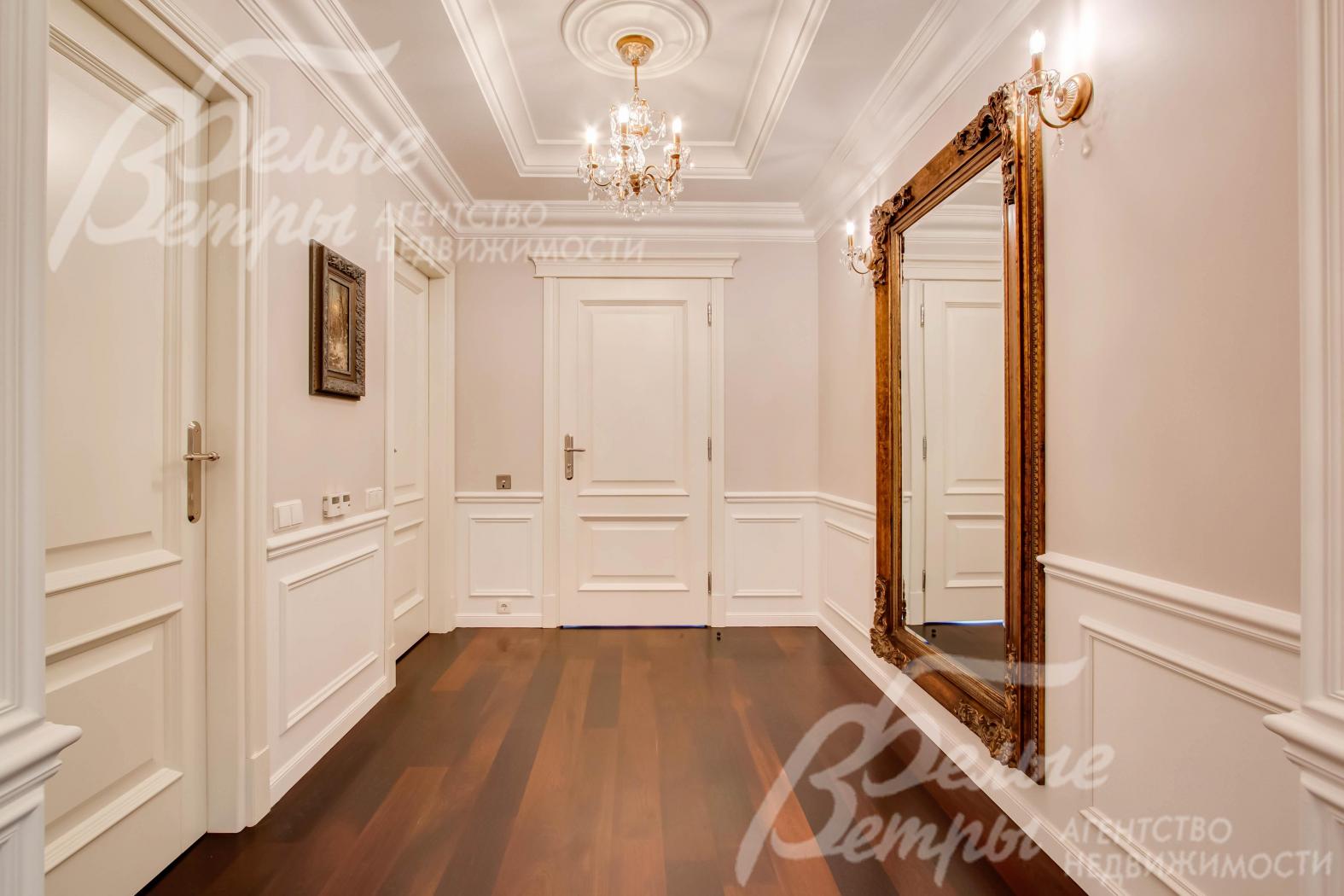 Выполнена отделка в классическом стиле в использованием материалов премиум-класса