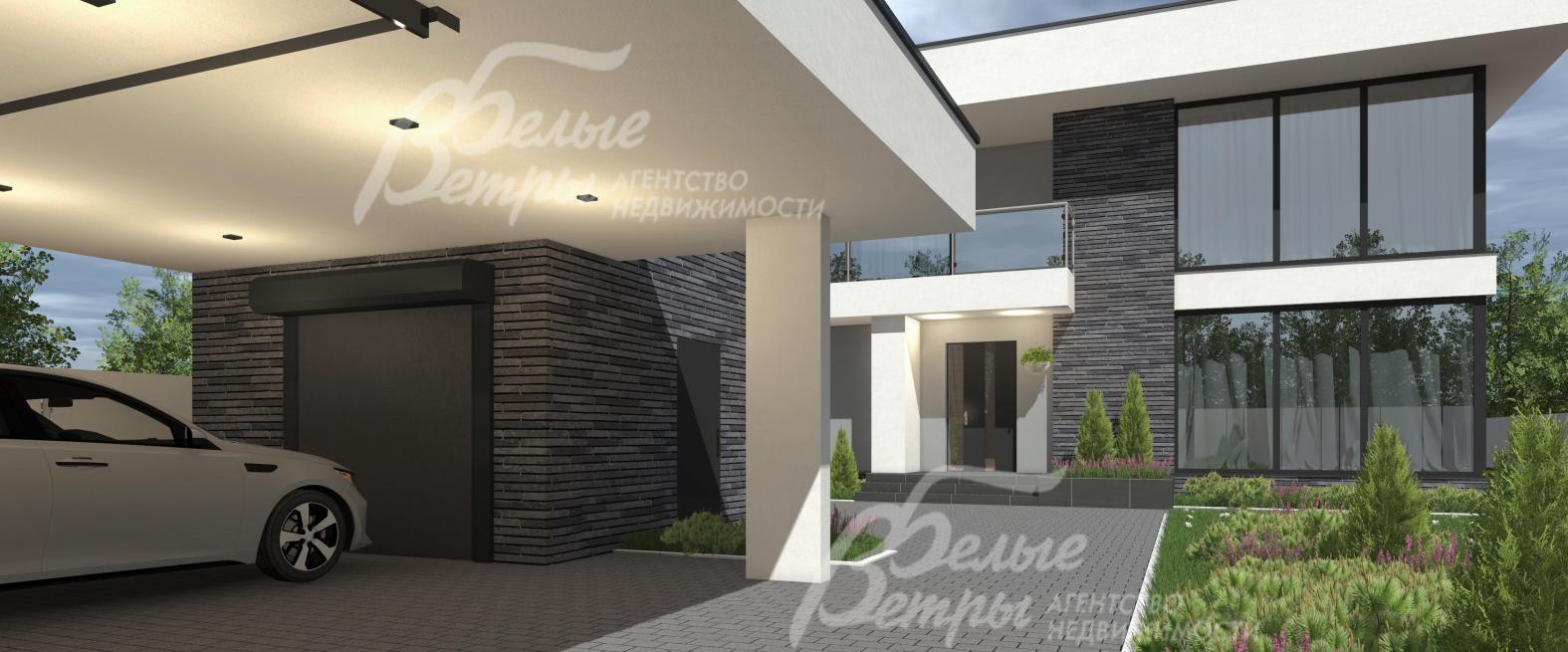 Новый дом стиле хай-тэк на участке 15 соток в охраняемом коттеджном поселке в районе деревни Шаганино.