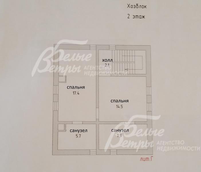 Дополнительные строения: гостевой дом 100 кв.м 1 эт. Бойлерная 7,4 кв.м, прихожая 8,9 кв.м, комната отдыха 23,6 кв.м, раздевалка с душевой 7,5 кв.м, сауна 4 кв.м, туалет 2 кв.м; 2 эт. Коридор 2,1 кв.м, спальня 17,4 кв.м с санузлом 5,7 кв.м, спальня 14,5 кв.м с санузлом 7,9 кв.м