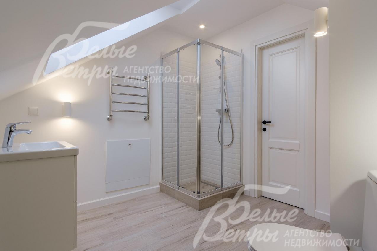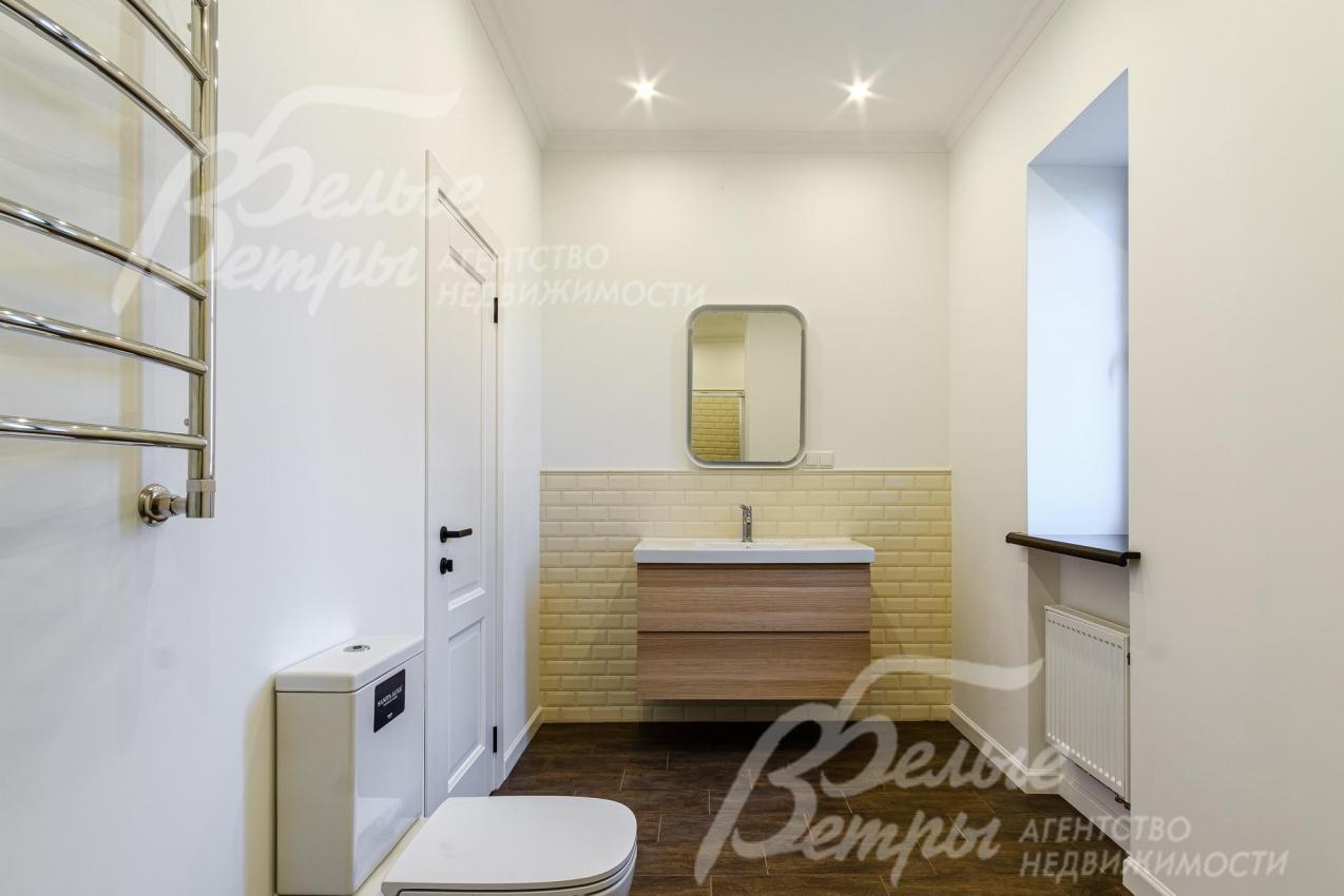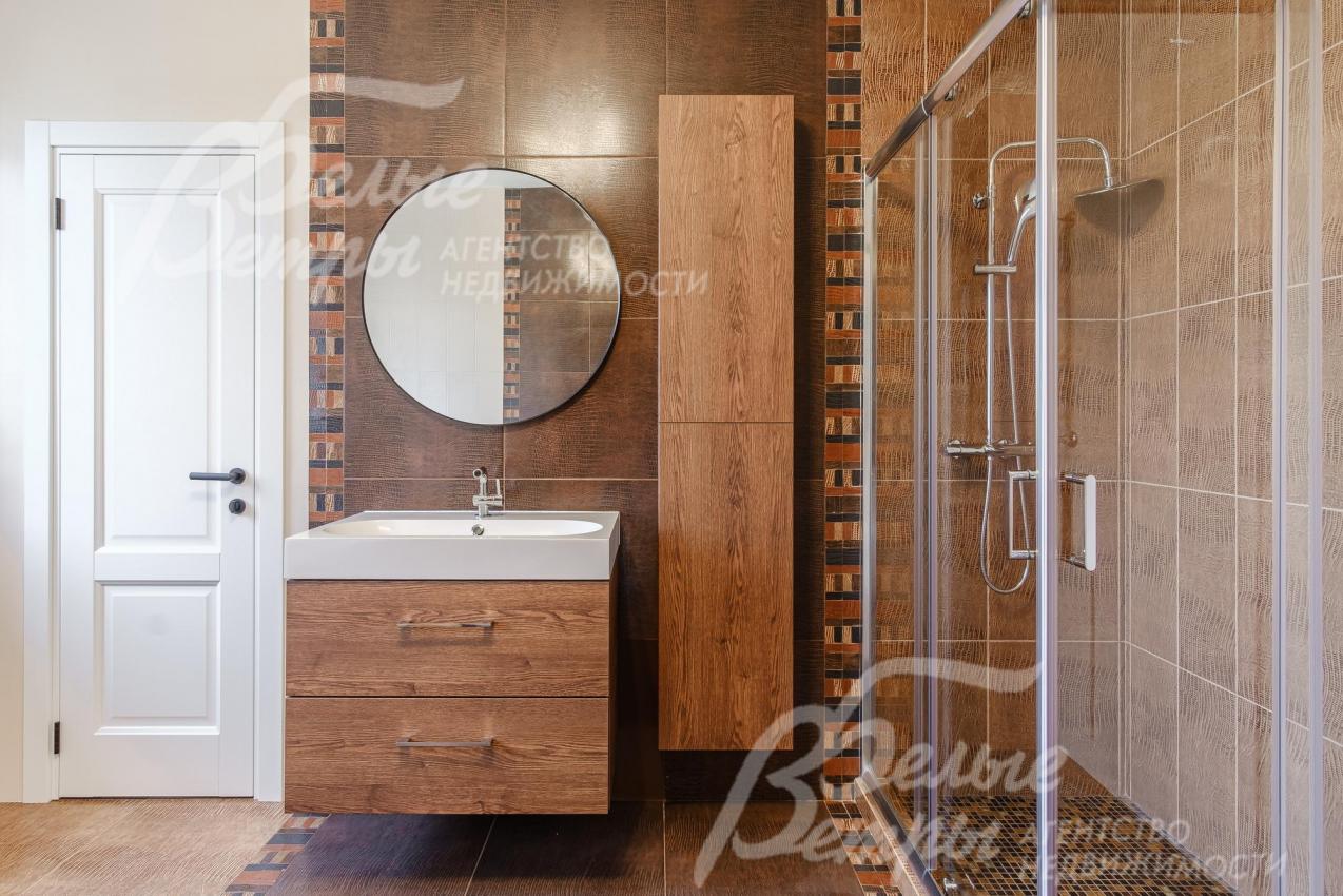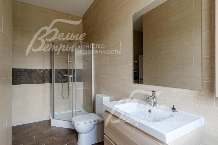 Описание внутренней отделки: выполненная современная отделка в светлых тонах. Стены окрашены, в санузлах - частично плитка. На полу паркетная доска, в санузлах - плитка. Потолки подвесные со встроенным освещением. Лестница ж/б со ступенями и поручнями из массива. Межкомнатные двери белого цвета с качественной контрастной фурнитурой.