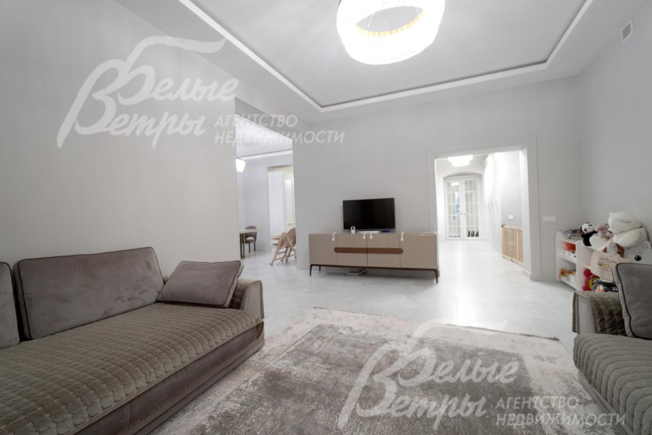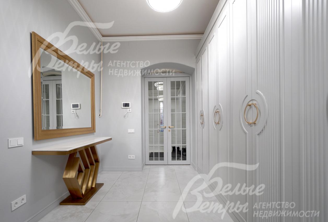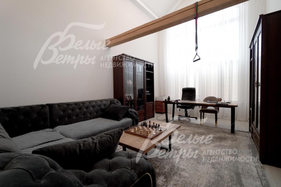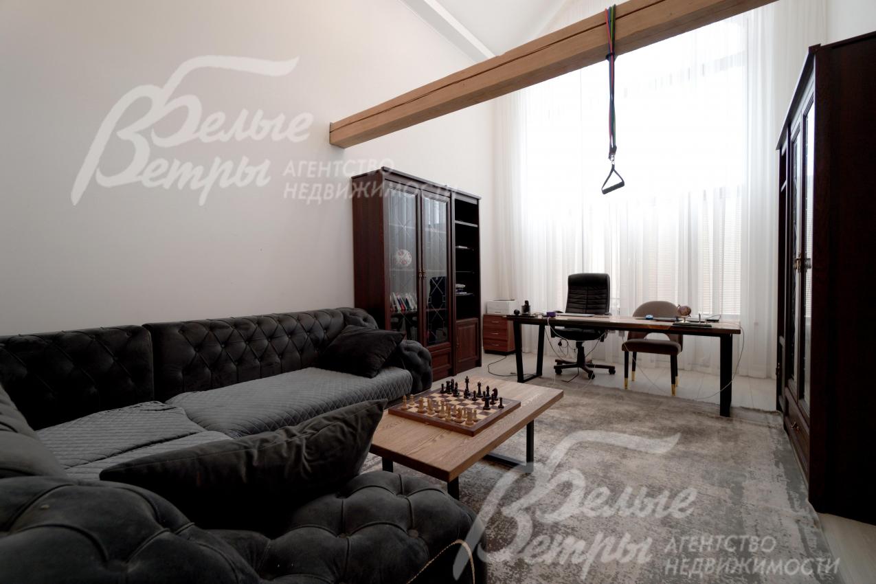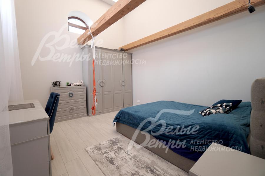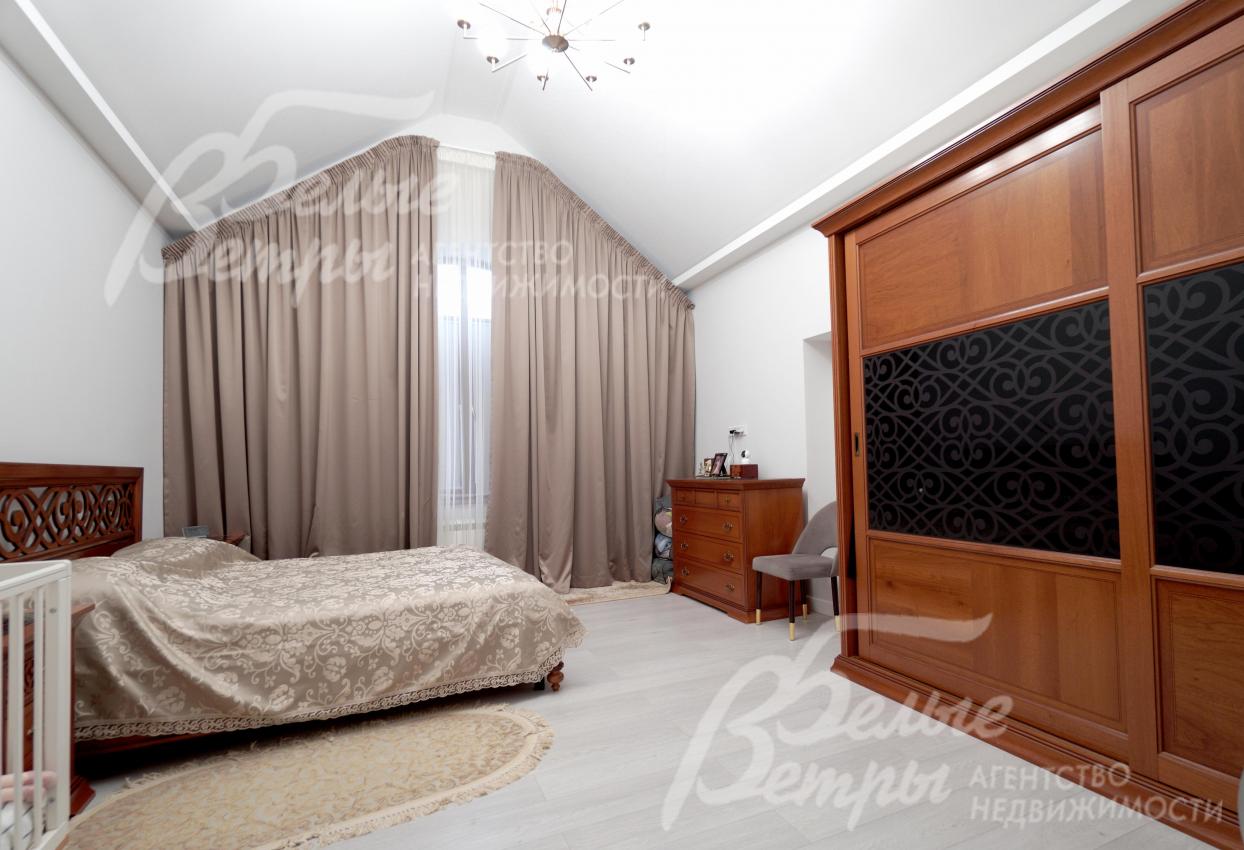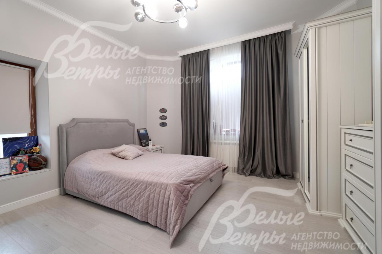 Мебель, оборудование: интерьер дома укомплектован фирменной мебелью российского и итальянского производства. Корпусная мебель изготовлена из массива дерева, встроенные шкафы – также из массива дерева с эмалированным покрытием, в спальне – итальянские диваны. На кухне – гарнитур в классическом стиле из массива ясеня (толщина фасадов 22 мм, фурнитура BLUM) с островом, столешница из искусственного камня, встроенная техника Gorenje, широкий холодильник TOSHIBA и морозильник Liebherr. В столовой – обеденная группа на 8 персон, стол из слэба мрамора. Интерьер помещений дополняют люстры, настенные светильники и шторы. В санузлах установлена вся сантехника и смесители преимущественно брендов Villeroy & Boch, в одном из санузлов – дорогостоящая ванна Villeroy & Boch La Belle. Комплектация дома мебелью обсуждается индивидуально