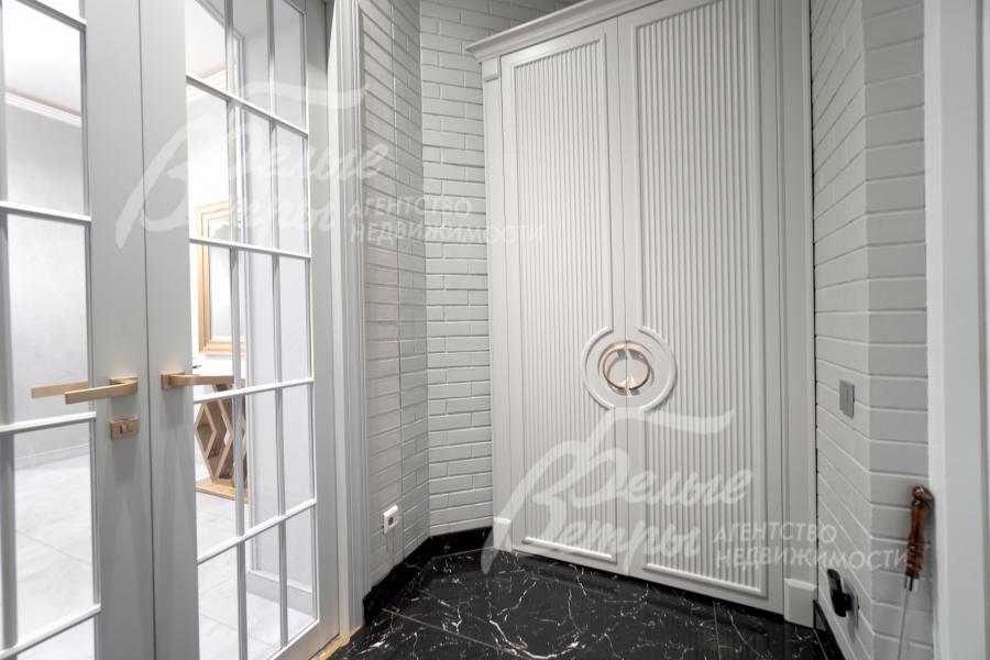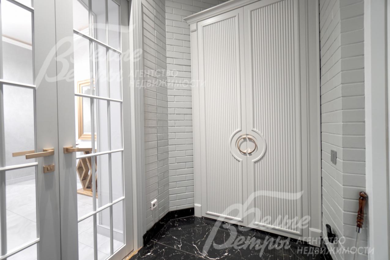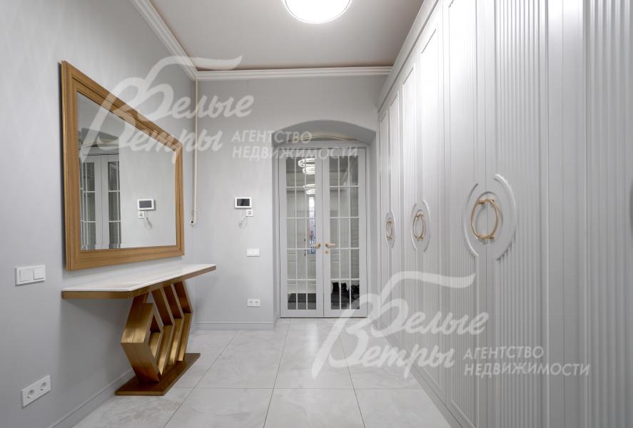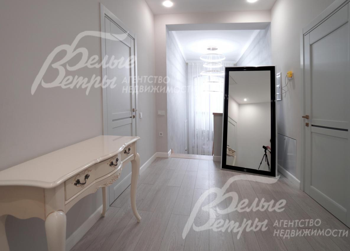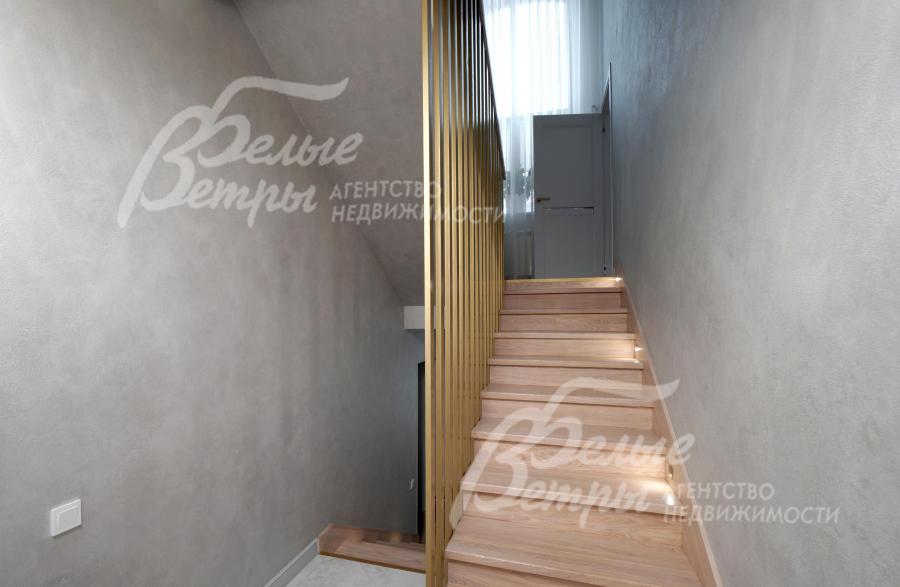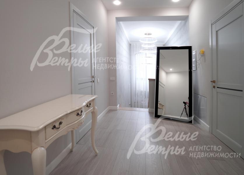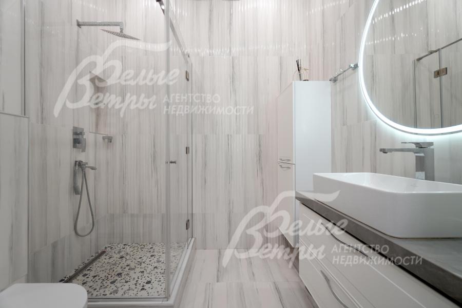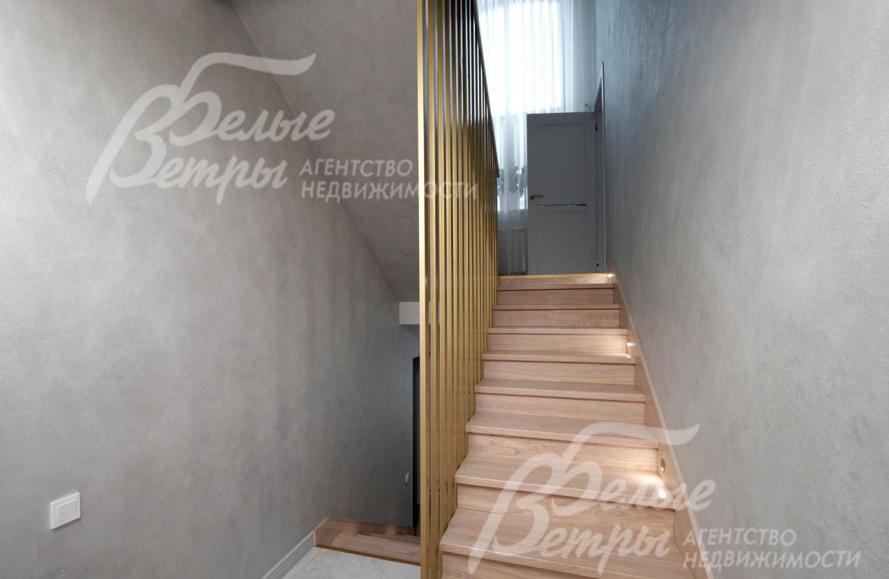 Описание внутренней отделки: отделка выполнена в стиле современной классики с преобладанием светлых оттенков: высокое качество материалов сочетается с продуманными световыми решениями и элегантным декором. Стены окрашены декоративной штукатуркой с техникой шелкографии, санузлы оформлены испанским керамогранитом. На полу - испанский керамогранит и ламинат высокого класса. Потолки двухуровневые, из гипсокартона, с подсветкой. Под керамогранитом и в санузлах – тёплые водяные полы, в тамбуре и на террасе – электрические тёплые полы. Предусмотрена инженерная инфраструктура на балконе второго этажа: смонтированы закладные элементы под систему тёплого пола и подведены коммуникации, чтобы реализовать проект дополнительного санузла или зимнего сада (проект имеется). Установлены радиаторы, межкомнатные эмалированные двери из бука марки Волховец, широкая уличная стальная дверь с терморазрывом и стеклопакетом. На второй этаж ведет лестница с монолитным бетонным основанием: ступени, отделанные массивом ясеня, эффектно дополнены встроенной подсветкой. В спальне и кабинете есть возможность обустройства антресольного этажа