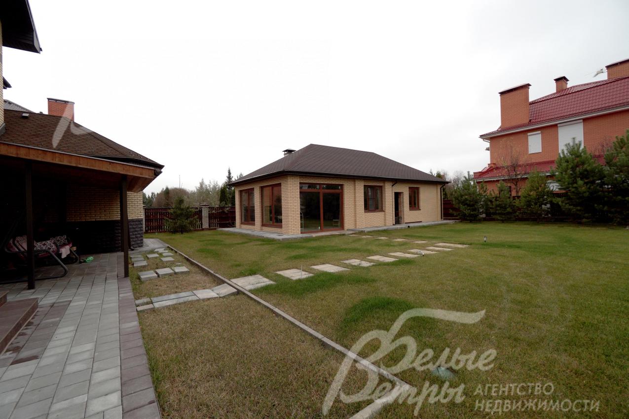 Кирпичный меблированный дом, построенный в классическом стиле с соблюдением строгих стандартов качества. В доме – высокие потолки, просторные комнаты, прихожая со встроенной системой хранения, терраса с тёплым полом, большой балкон. Дорогостоящие материалы в отделке, продуманное освещение и классический декор создают атмосферу утончённой элегантности и комфорта. Интерьер дополняет фирменная мебель российского и итальянского производства. Рядом с домом – навес для двух автомобилей и широкая парковка. Дом стоит на благоустроенном участке с соснами, туями и функциональной беседкой для барбекю с зоной бани. Участок расположен в строго охраняемом коттеджном посёлке бизнес-класса с прудом и собственной инфраструктурой в окружении леса.