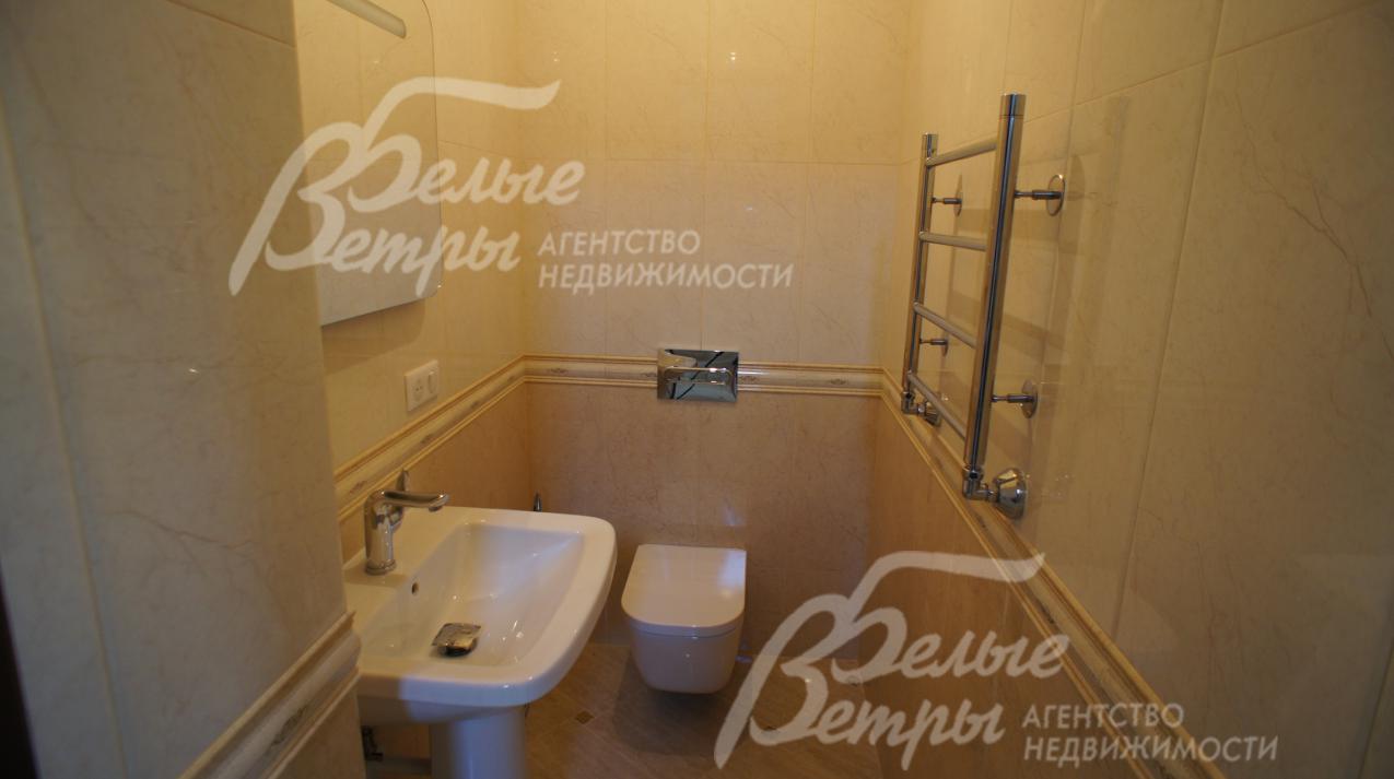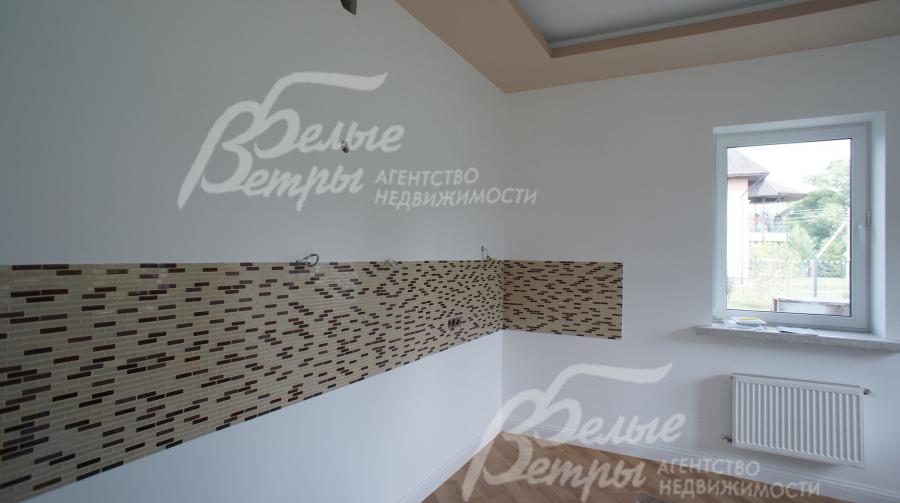 Описание внутренней отделки: Стены оклеены виниловыми обоями (пр-ва Германия), стены 3го этажа имитация бруса сосны. Полы покрыты паркетной доской, в гостиной плиткой с инфракрасным обогревом. Потолки натяжные с подсветкой. Лестница бетонная, ступени отделаны плиткой, перила деревянные с художественной ковкой. Двери шпонированные,некоторые нестандартной высоты 240 см. Все коммуникации разведены под ключ. Радиаторы "Kermi". Вся сантехника импортная брендов "Roca","Jacob Delafon".