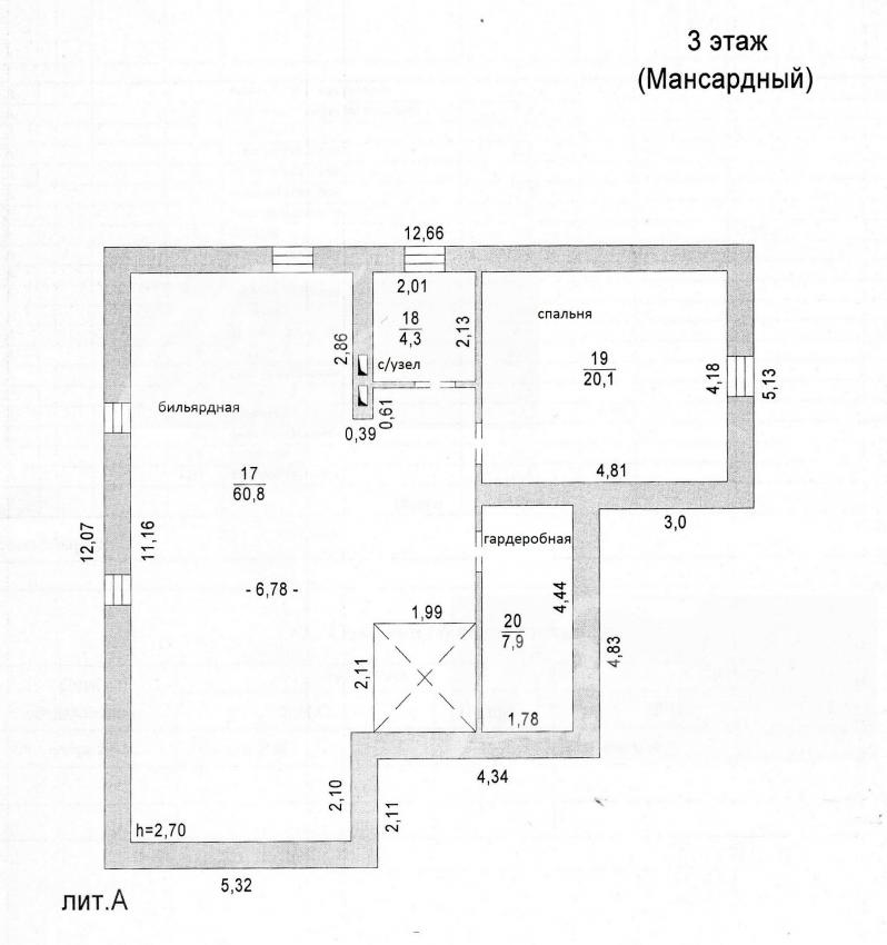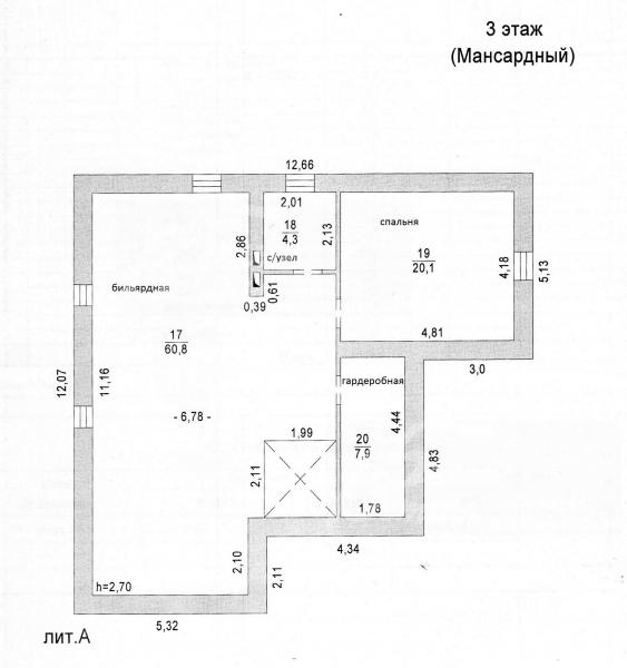 3-ий этаж: Каминный зал-бильярдная 60 кв.м, санузел, спальня 20 кв.м, гардеробная 8 кв.м.