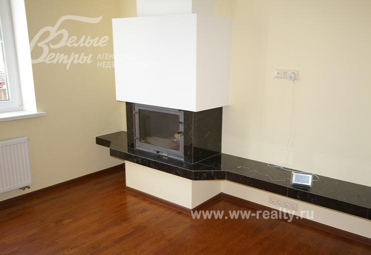 Гостиная с камином 37 кв.м и выходом на террасу и участок
