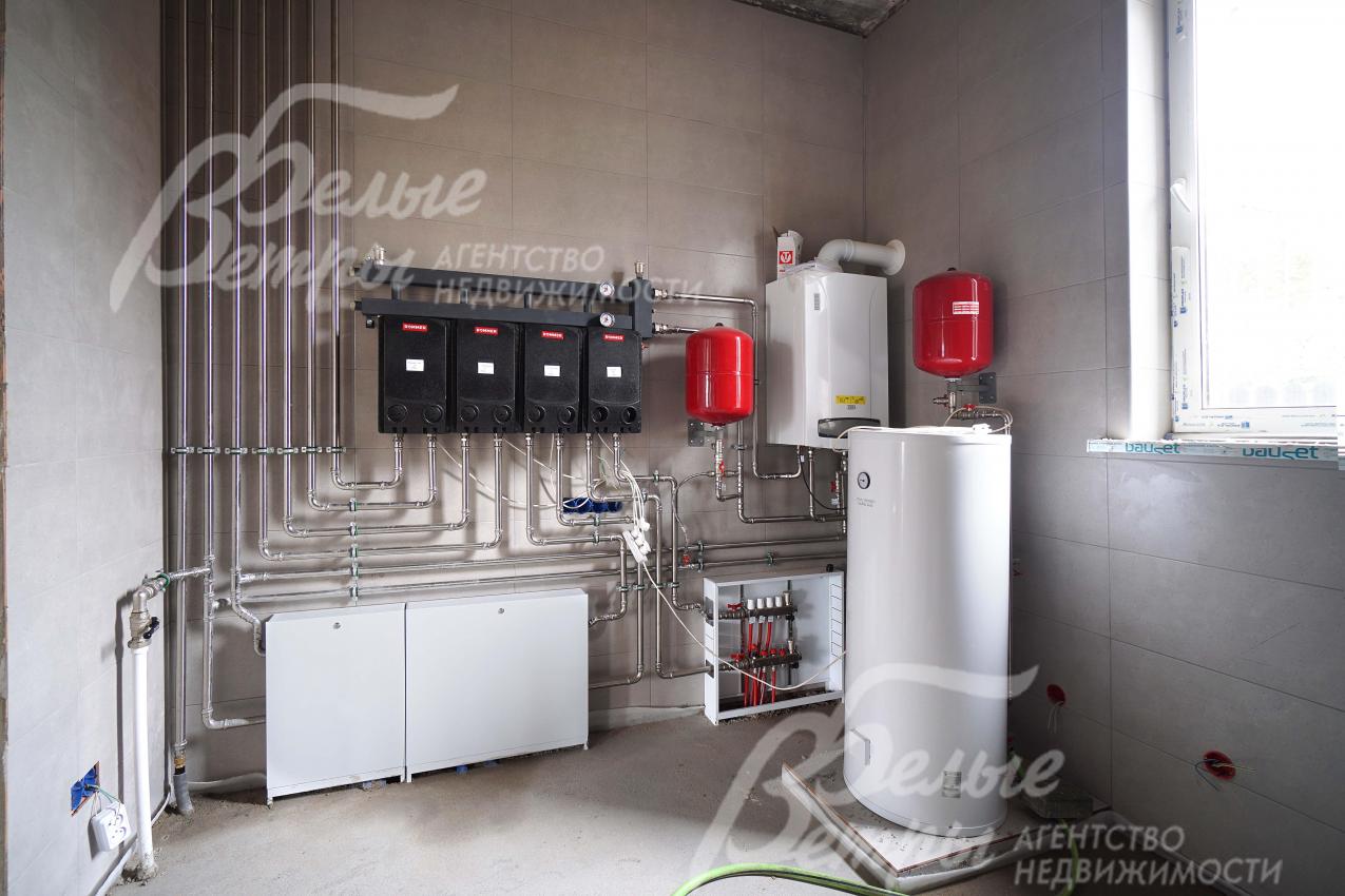 Описание внутренней отделки: монолитная лестница шириной 110 см. Все коммуникации заведены в дом.