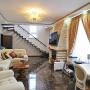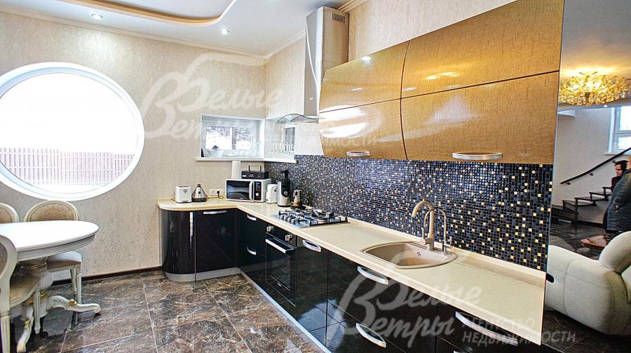 Описание внутренней отделки: Стены оклеены обоями, в санузлах плитка. Полы на 1м этаже покрыты плиткой и керамогранитом с водяным подогревом, на 2м этаже- ламинат. Потолки подвесные гкл фигурные многоуровневые с различной подсветкой. Лестница на больцах, ступени дубовые. Вся сантехника установлена. Все коммуникации разведены под ключ, радиаторы биметаллические секционные. Двери деревянные шпонированные. Подоконники -пвх под мрамор.
