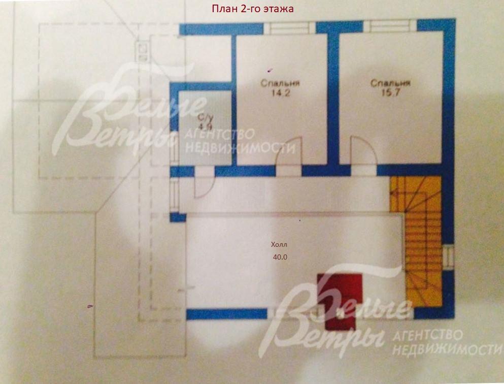 2-ой этаж: Холл 40 кв.м, спальня 15.7 кв.м, спальня 14 кв.м, санузел 5 кв.м.