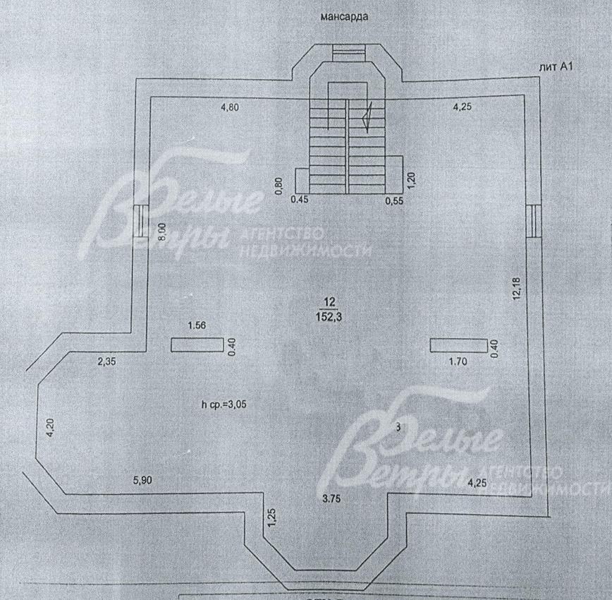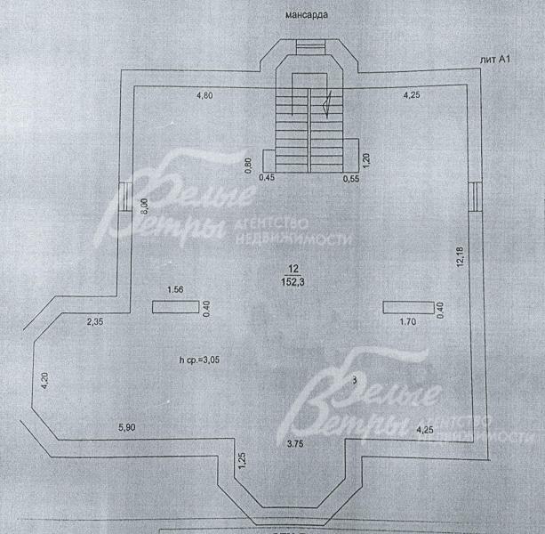 3-ий этаж: мансарда-общая площадь 152 кв.м