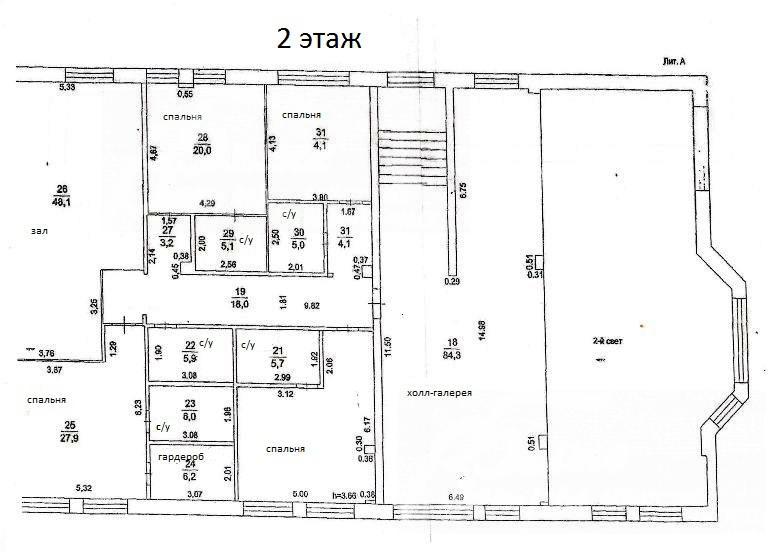 Описание внутренней отделки: стены и потолок под черновую отделку, сделана черновая стяжка пола, лестничный марш бетонный