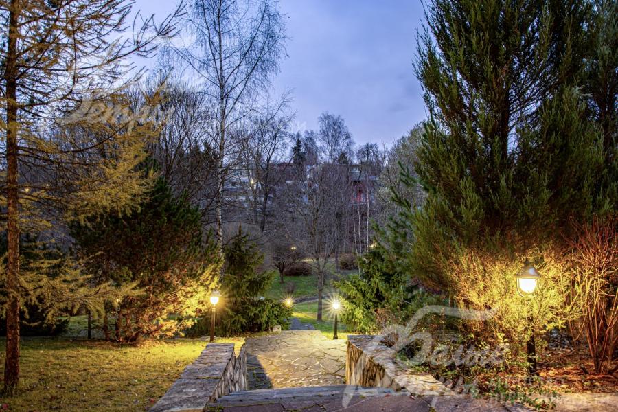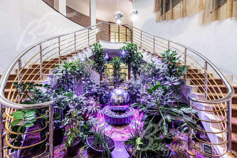машиномест: 2, сауна, купель, квартира для персонала, веранда, камин, второй свет в гостиной, бильярдная, домашний кинотеатр, зимний сад.