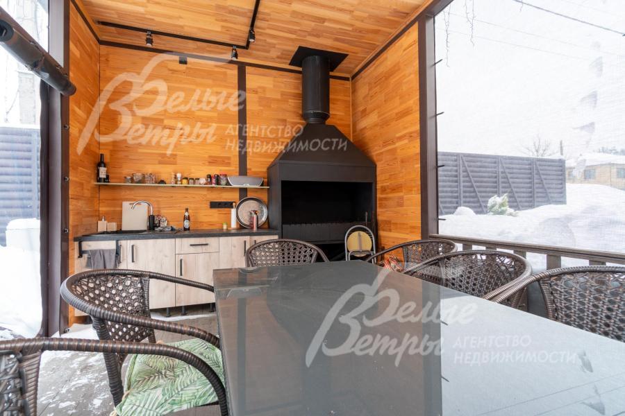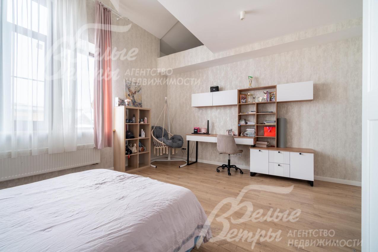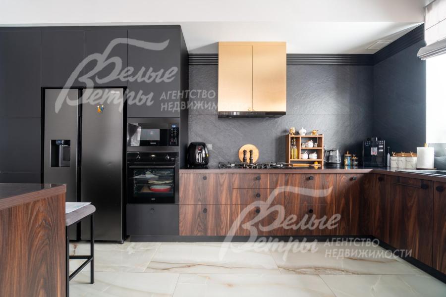 Меблированный кирпичный дом с привлекательной архитектурой в традициях альпийского шале и большой площадью остекления. Дом наполнен светом, в нём — просторные помещения, пять спален, одна из них – на первом этаже, жилые цокольный и мансардный этажи, мастер-спальня впечатляет высокими потолками. Интерьер в стиле эклектики с элементами ар-деко и лофта дополнен дизайнерскими предметами декора и мебели, декоративными фресками, 3D-панелями из ясеня, стильной удобной лестницей. Дом стоит на благоустроенном участке с высаженными туями, елями, цветочными композициями, тёплой беседкой барбекю. Участок находится в охраняемом коттеджном посёлке рядом с городской инфраструктурой и лесопарковой зоной.