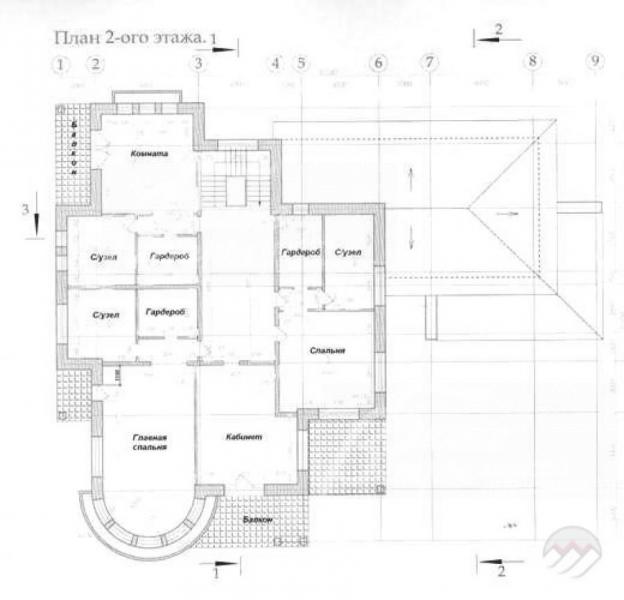 Общая площадь строений: 1080 м2 (в т.ч.: дом 967.4 кв.м, гараж с квартирой для персонала 120 кв.м)