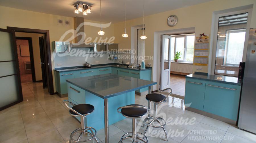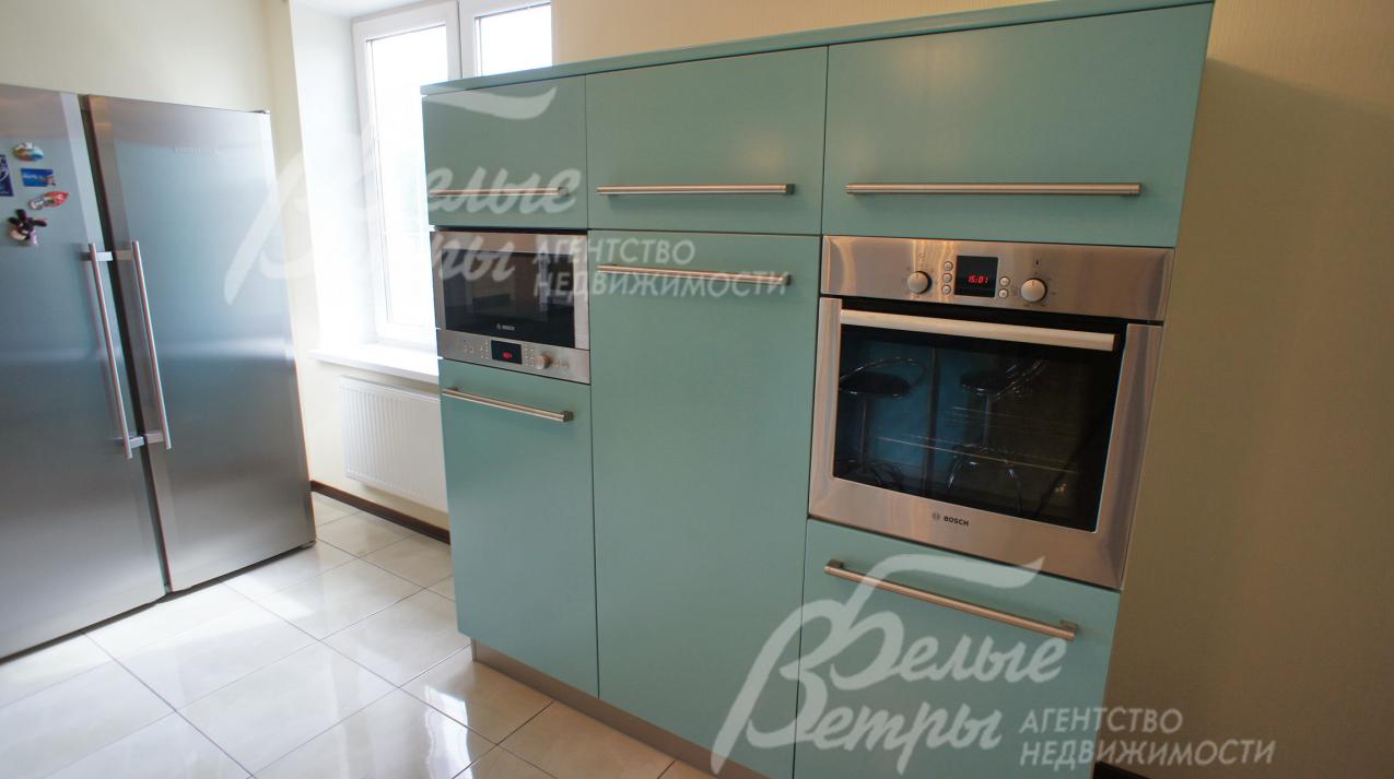 Мебель, оборудование: Итальянская кухня с "островом", фасады МДФ окрашены в цвет морской волны, столешница из искусственного камня. Встроенная техника брендов "Bosch", "Electrolux", холодильники марки "Liebherr".