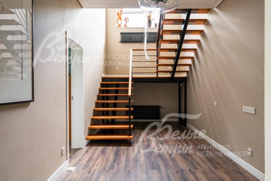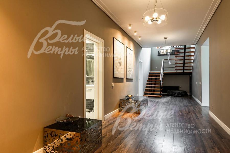 Описание внутренней отделки: выполнена дизайнерская отделка с использованием современных качественных материалов. Полы первого этажа в кухне-гостиной и во всех санузлах: итальянская плитка с водяным подогревом, полы 2-го этажа — паркетная доска. Потолки подвесные со встроенным освещением. Стены окрашены. Итальянская сантехника фирмы Stella.