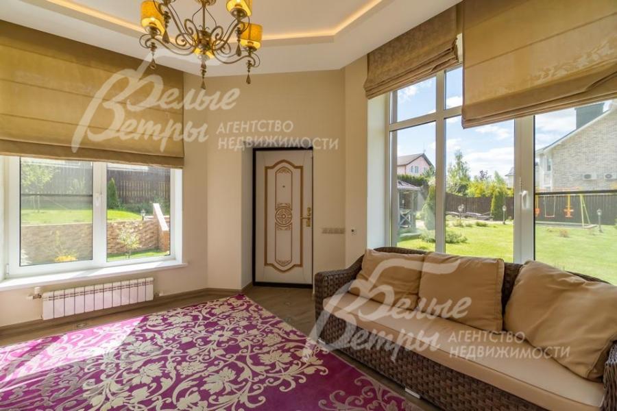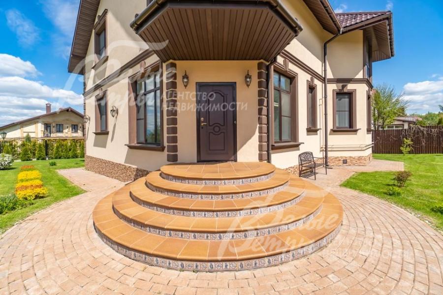 Современный кирпичный дом под ключ в охраняемом поселке бизнес класса с центральными коммуникациями. Поселок расположен на берегу реки Пахра, граничит с лесом. В доме выполнена качественная отделка. Много спален, одна из которых на первом этаже. Коттедж обставлен мебелью и техникой. На участке ландшафтный дизайн, беседка, гараж на 2 авто. Многоуровневый участок с панорамным видом. В коттеджном поселке есть свой оборудованный пляж с беседками и зоной барбекю. В 10 мин на а/м от поселка престижная школа "Ника".