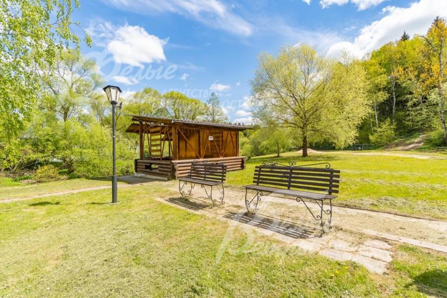 Благоустройство участка: видовой участок с панорамным видом на речку и поселок. Выполнено зонирование участка, ландшафтный дизайн с большими и малыми формами кустарников, а также другими элементами декора. Высажено множество плодовых, хвойных, декоративных деревьев и кустарников, клубника. Высажена живая изгородь из туй. Освещение по всему участку. Зона барбекю. Детская площадка. Беседка. Дренажная система по всему участку с выводом в центральную канализацию.