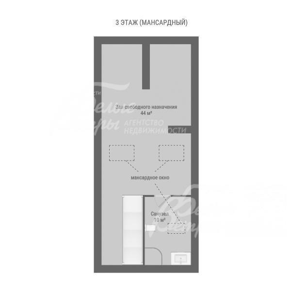 3-ий этаж: кабинет-библиотека 43.7 кв.м, санузел 9.3 кв.м.