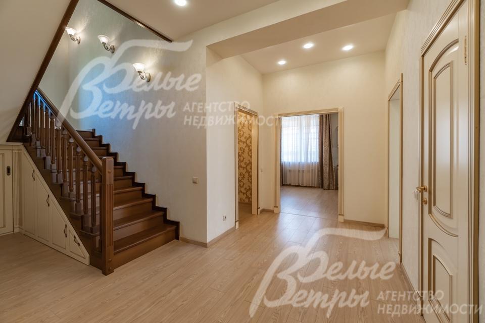 Описание внутренней отделки: выполнена отделка в классическом стиле, в светлых тонах. На стенах итальянские обои. На полу керамогранит производства Испания и ламинат KRONOTEX, теплый пол везде, где керамогранит и плитка. Лестница на монолитном основании отделана цельным буком. Потолки обшиты гипсокартоном, многоуровневые с разными сценариями освещения. Установлена импортная сантехника Roca Group (Испания), унитазы JACOB DELAFON (США). Электрика Legrand, медная проводка. В каждой комнате биометрические радиаторы. Межкомнатные двери Alvero из цельного бука, покрытого эмалью. Массивная входная дверь - двойная. Установлена система обогрева входной зоны, ступенек и верхней площадки, а также со 2 выхода во двор ступенек и верхней площадки.