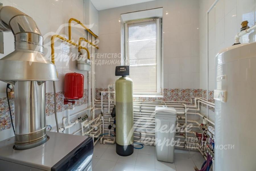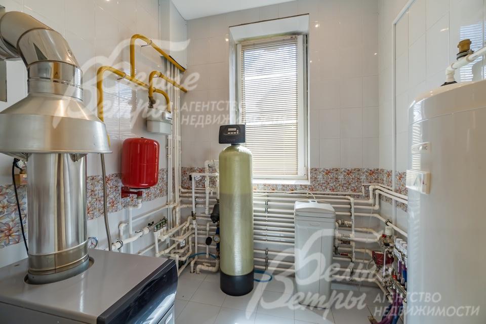 Инженерное обеспечение: установлены котел Baxi напольный газовый, бойлер AQUASTIC 150 литров и система фильтрации воды. Естественная вентиляция, 1 кондиционер Mitsubishi Electric на кухне и 2 вывода в холле. В доме установлена сигнализация, выведенная на пульт ЧОП Гарант.