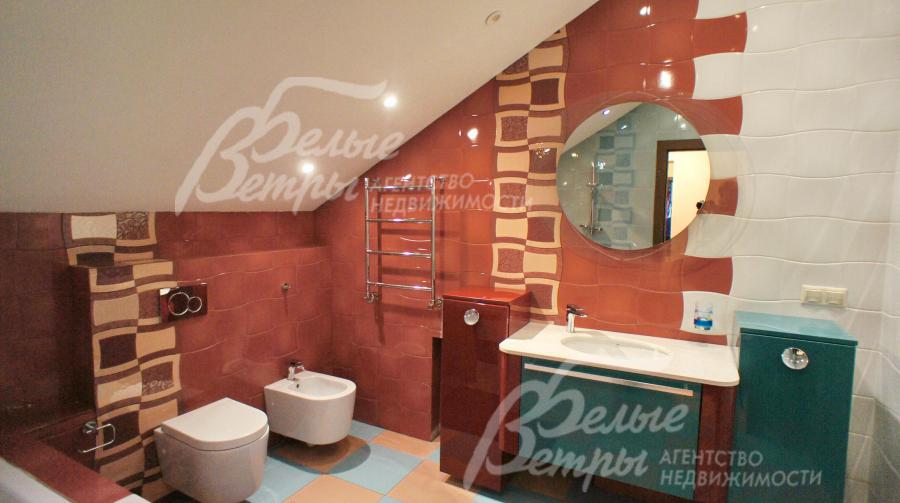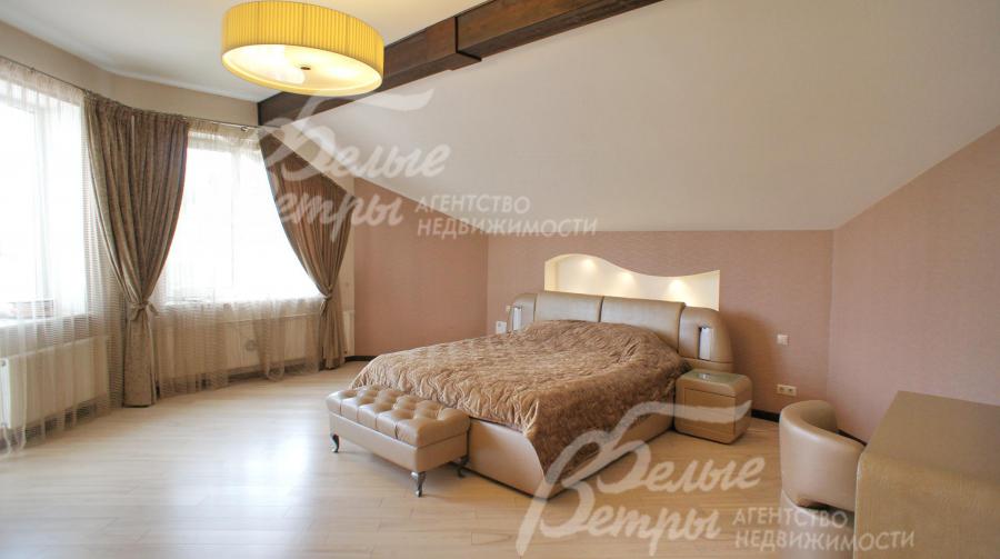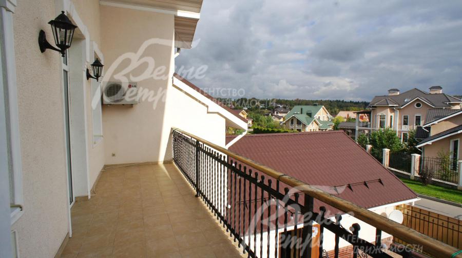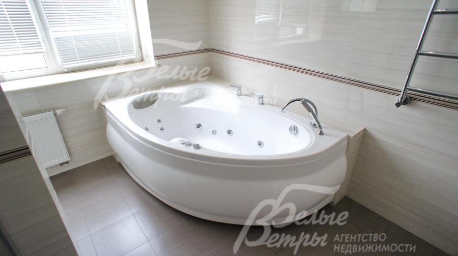 Описание внутренней отделки: Стены отделаны декоративной штукатуркой с мраморной крошкой, в спальнях оклеены бумажными обоями. В холле и кухне теплые полы покрыты керамогранитом, в остальных помещениях паркетной доской из массива ясеня (авторская коллекция). В детской комнате ковровое покрытие. Терраса выполнена из корабельной доски. Потолки гипсокартонные многоуровневые. Лестница бетонная отделана массивом дуба. Подоконники мраморные. Все коммуникации разведены под ключ. Вся сантехника брендов "Jacob Delafon" и "Grohe" установлена. Джакузи "poolspa" с гидромассажем и подсветкой.