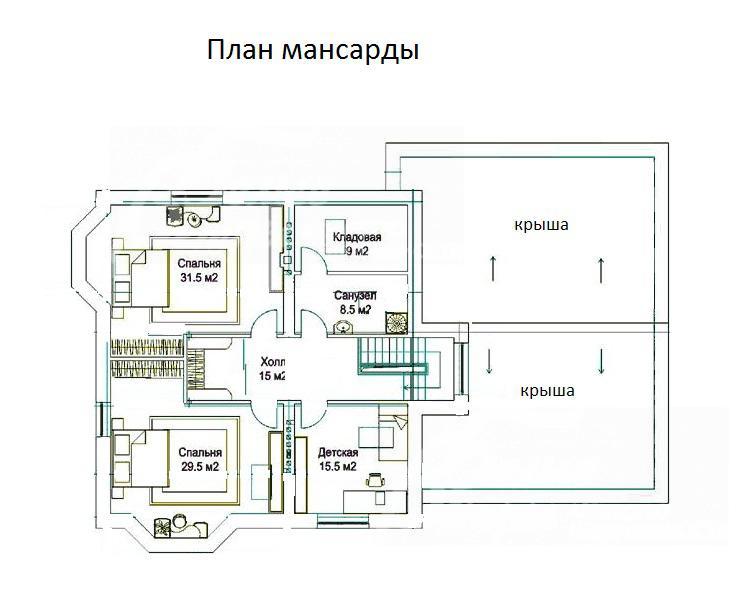 3-ий этаж: спальня 32 кв.м, спальня 30 кв.м, детская комната/спальня 16 кв.м, кладовая 9 кв.м, санузел 9 кв.м