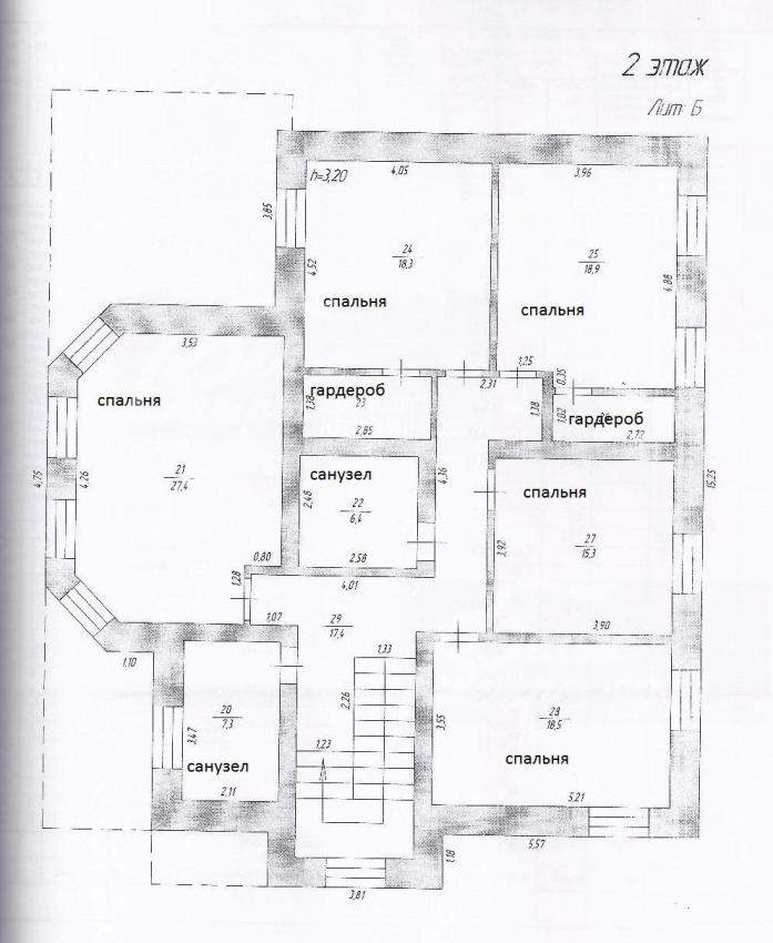 Спален: 7. С/узлов: 4. Комнат всего: 10.